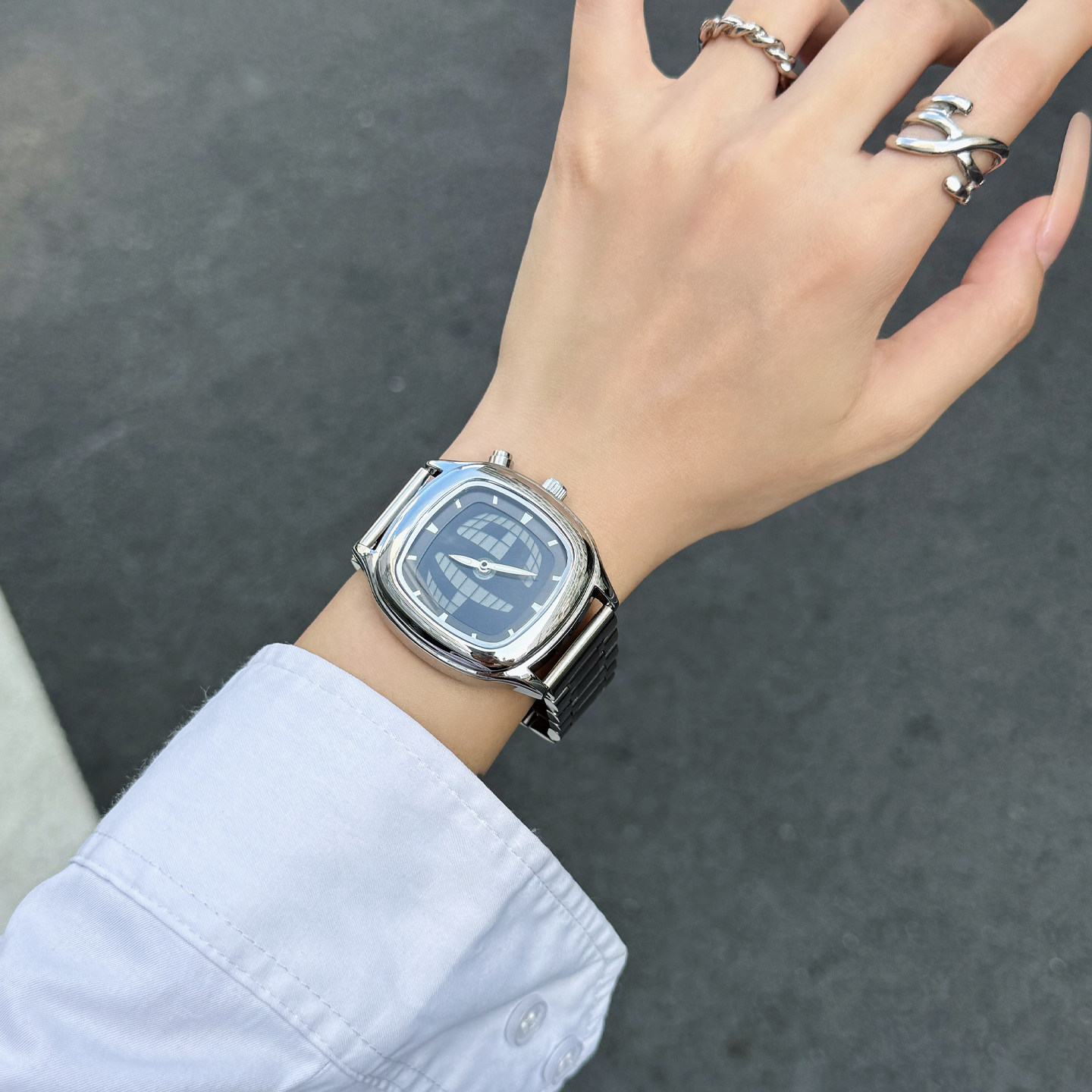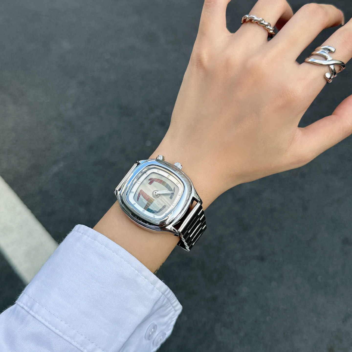 千禧风格手表女生防水复古钢带变形数字动态手表男女石英手表潮流