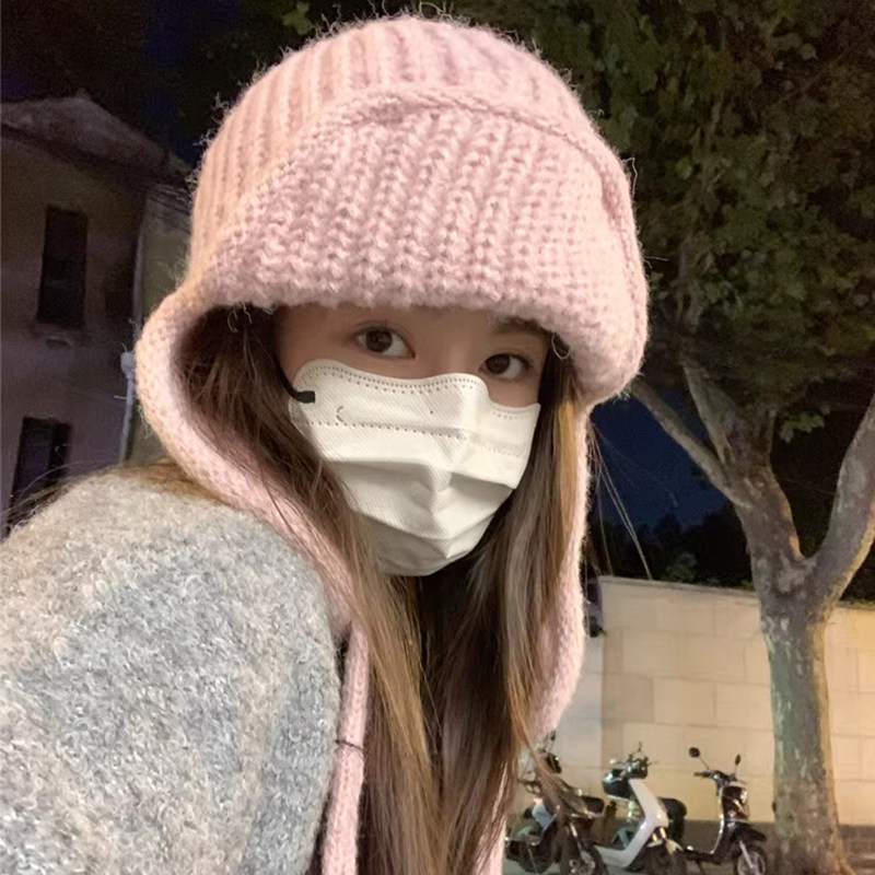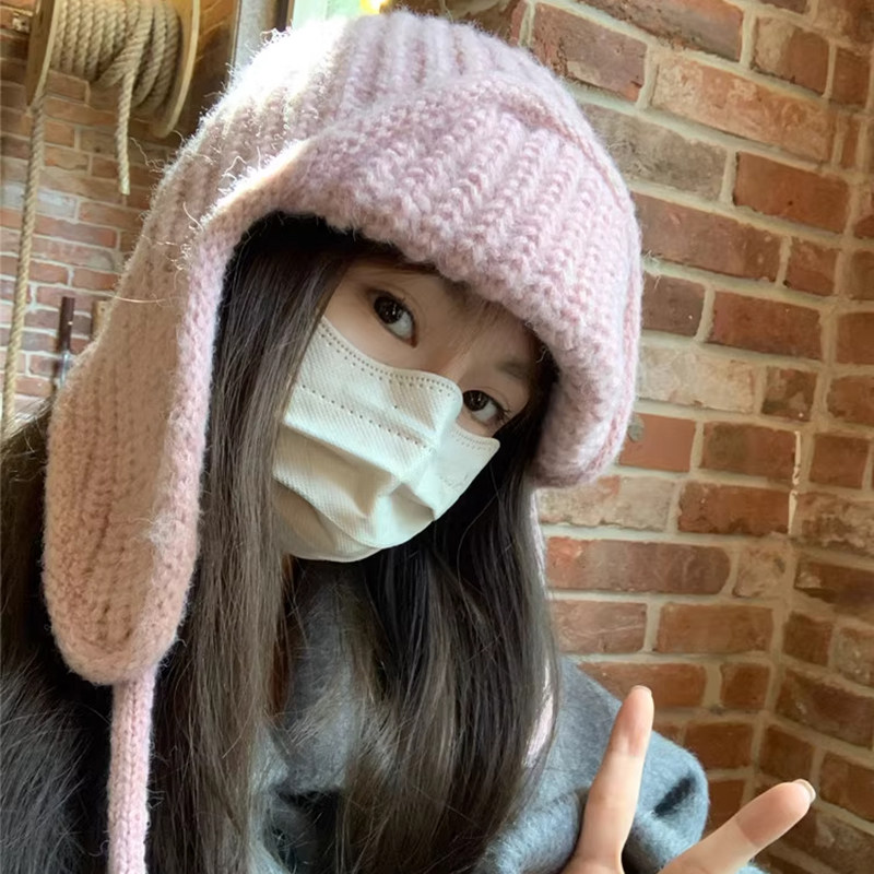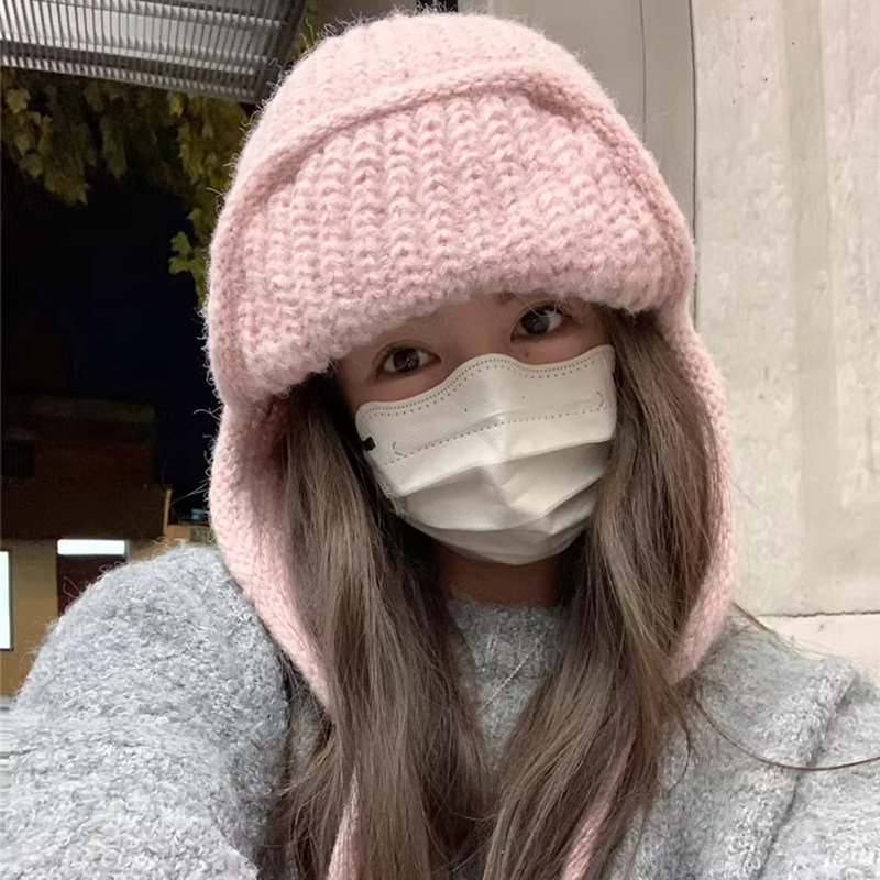 Classy key新加坡设计师联名款纯色护耳针织帽子保暖飞行雷锋帽