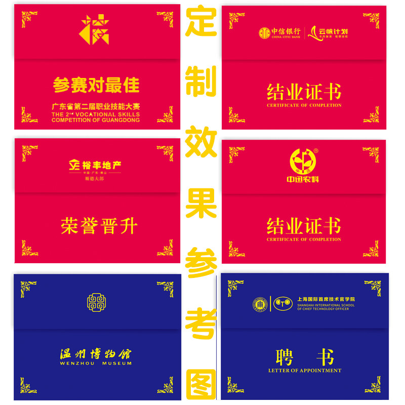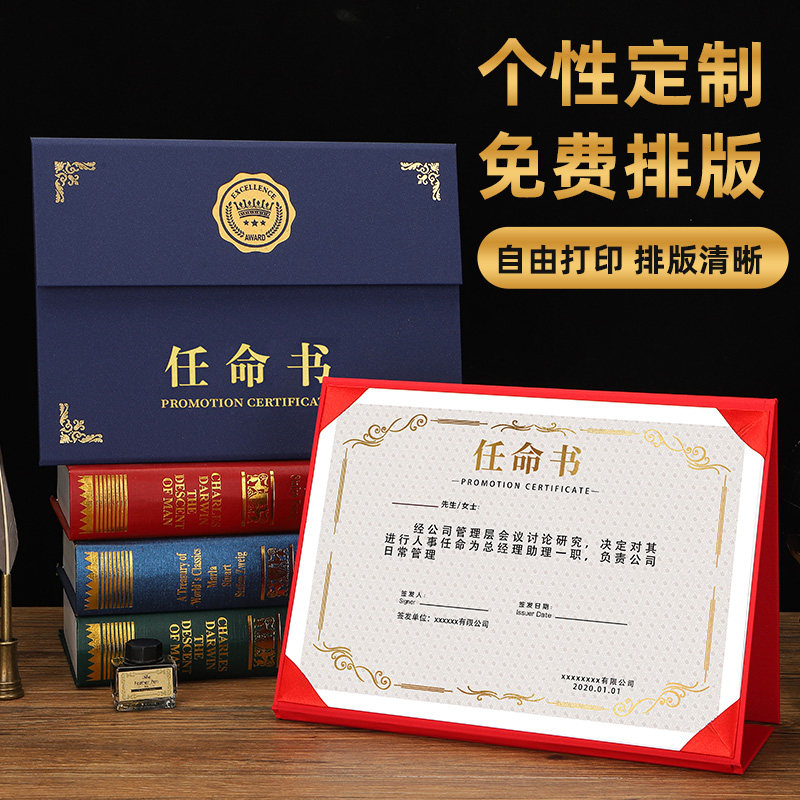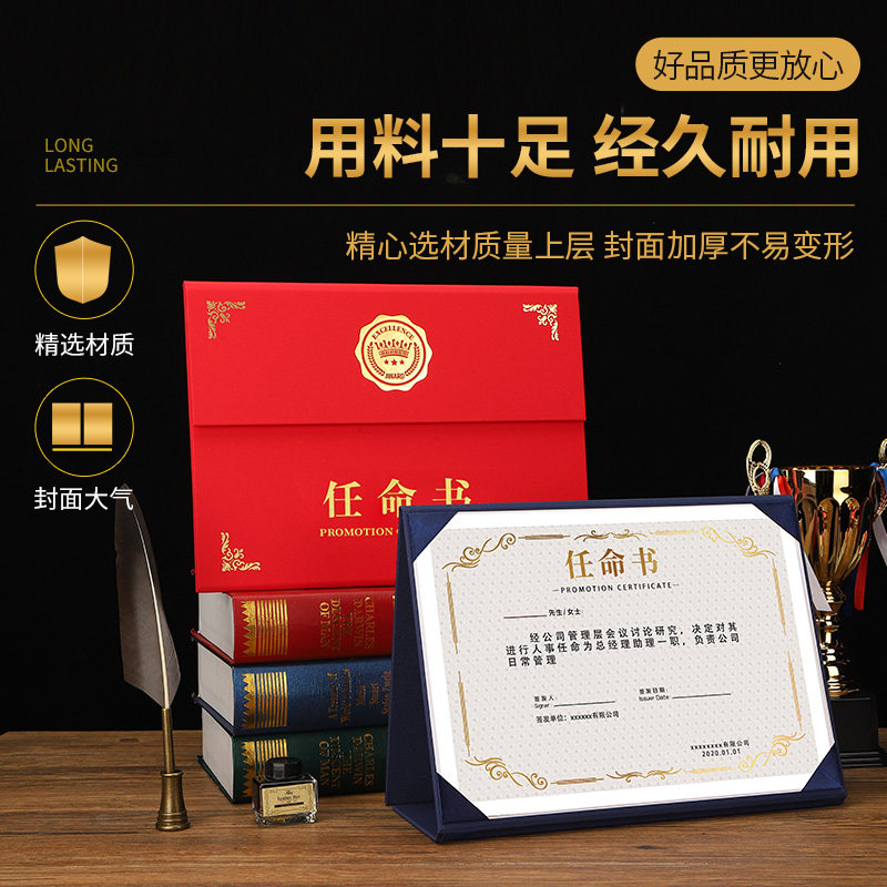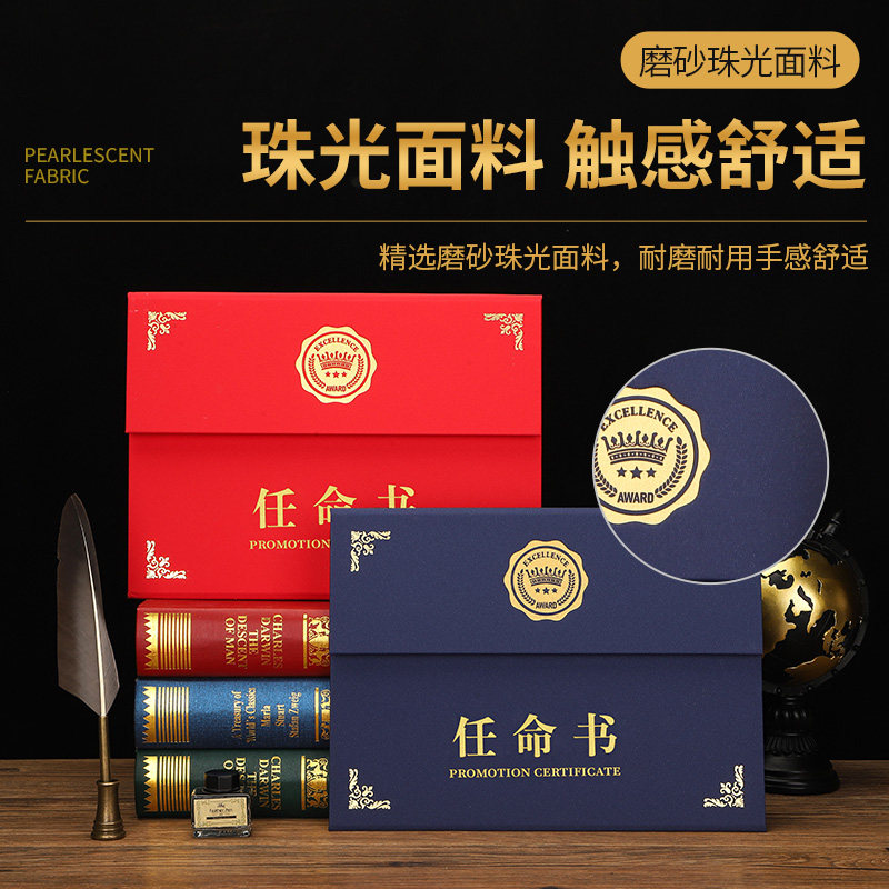 高档A4任命书三折a4横式珠光磨砂封面红色蓝色聘书聘用书定做聘任书招聘书证书外壳横款内页内芯打印定制LOGO