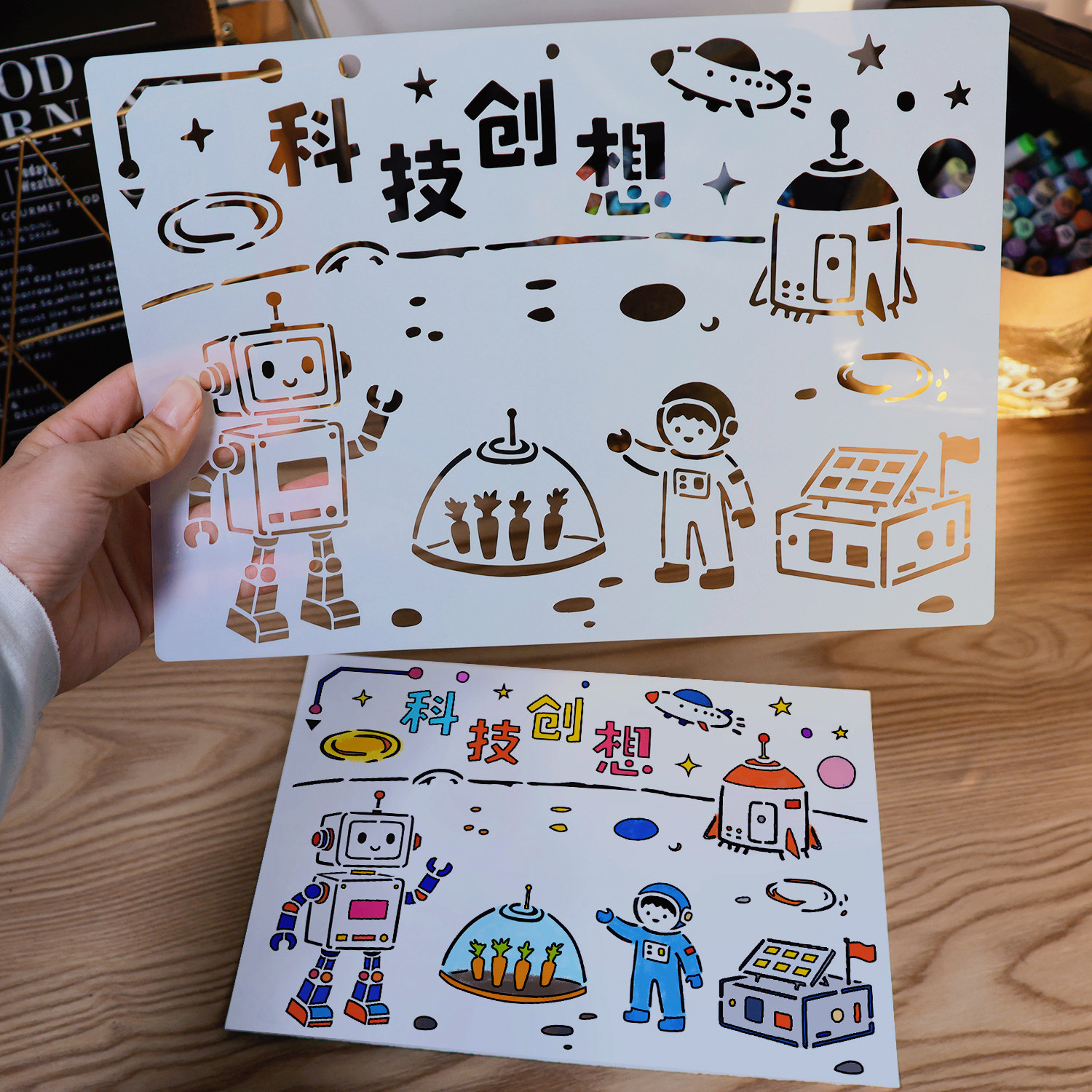 A4科技太空绘画手抄报镂空模板8k小学生人工智能读书小报画画神器
