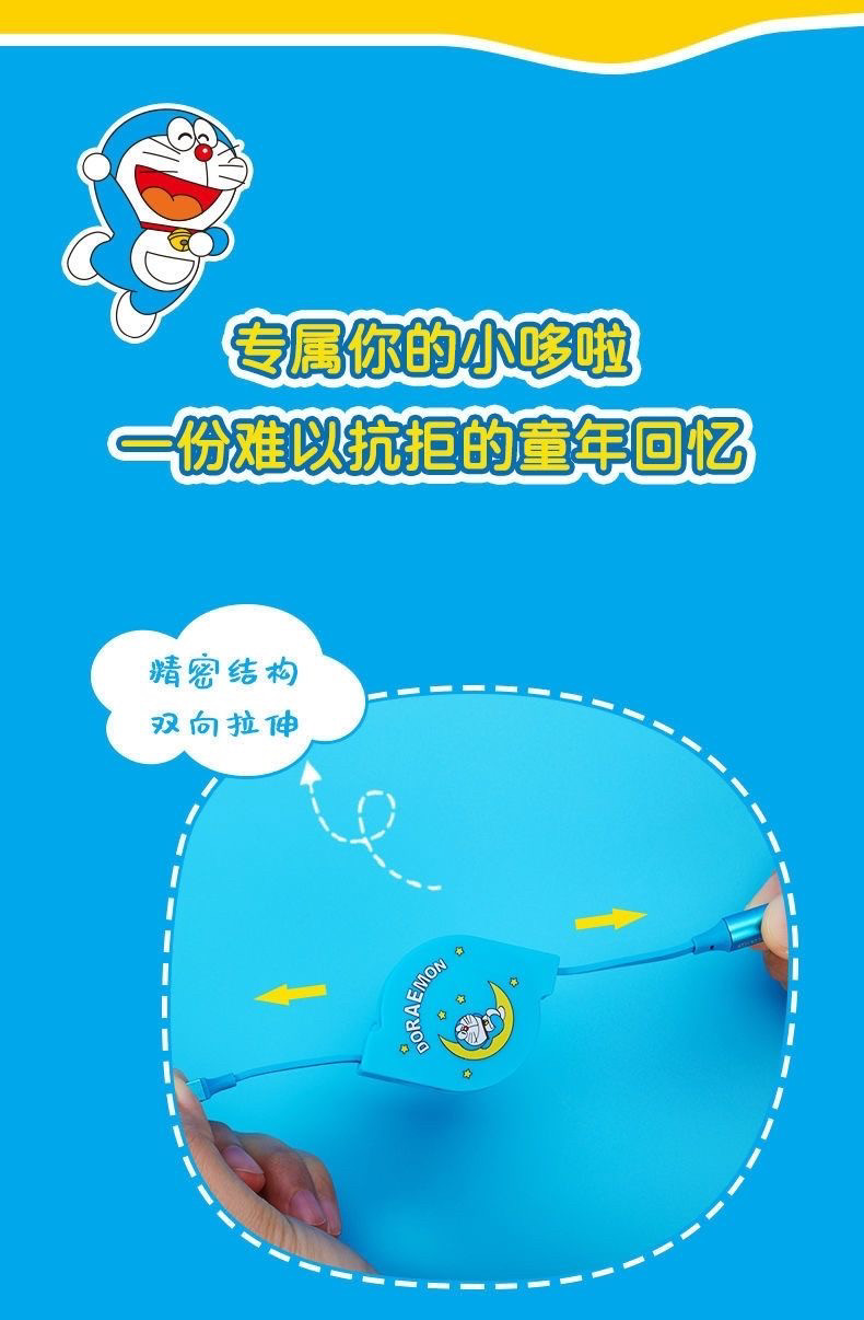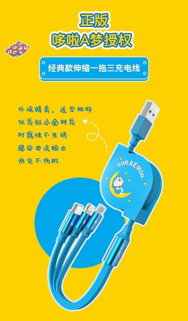 哆啦A梦数据线充电线苹果typec安卓3合1手机伸缩充电线