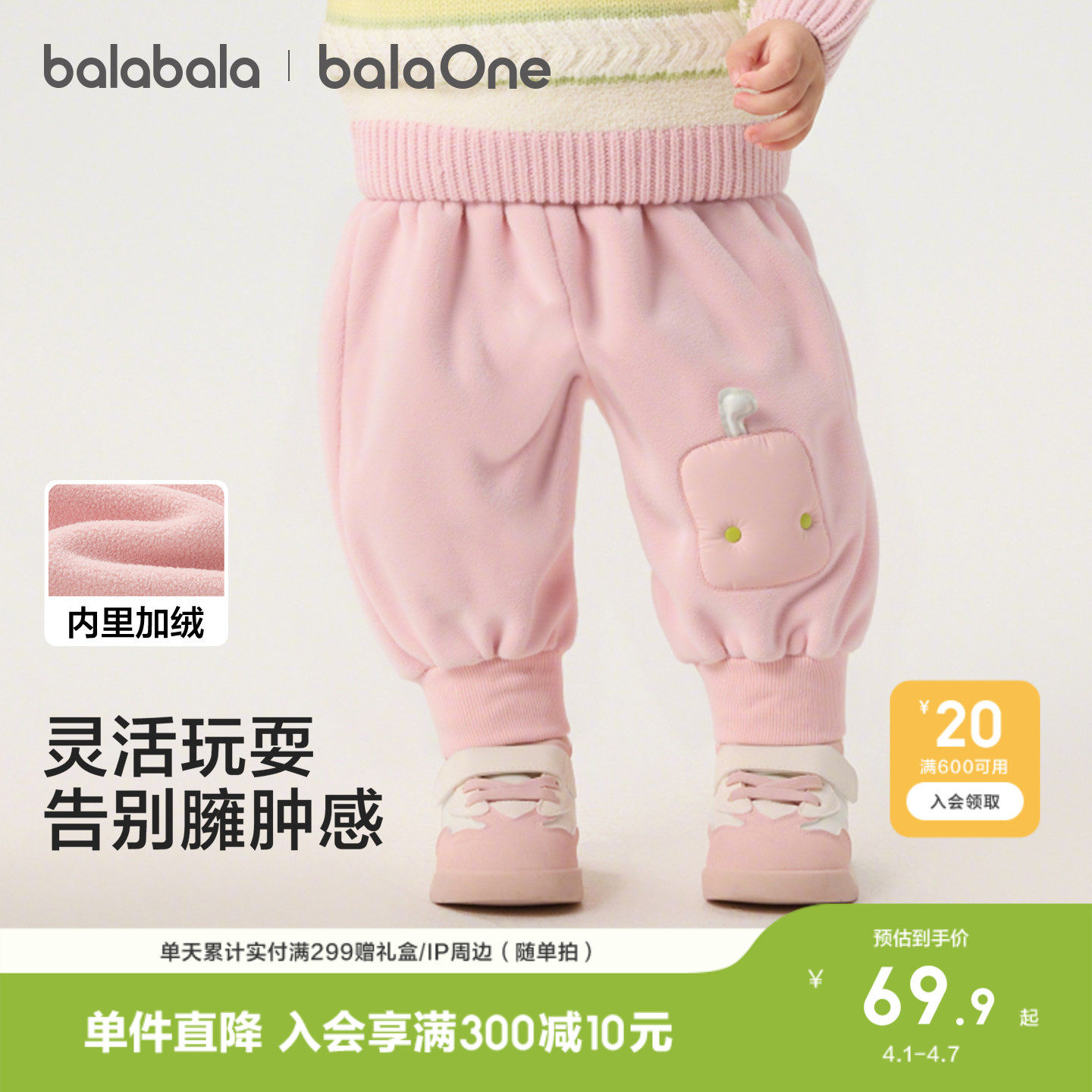 巴拉巴拉童装宝宝加绒长裤男童女童2026冬装休闲儿童保暖加厚裤子