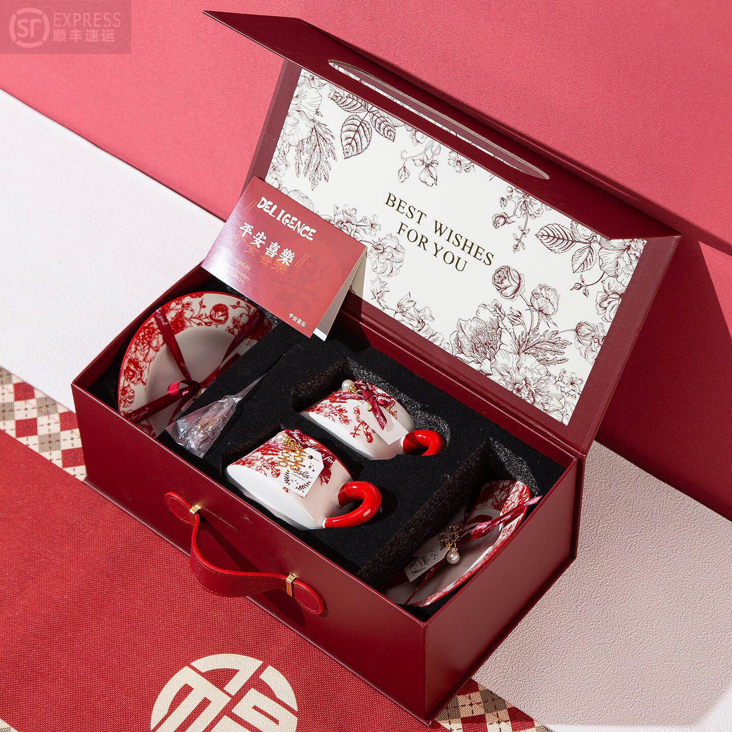 喜庆咖啡杯碟情侣对杯礼盒套装高级氛围感结婚新婚伴手礼乔迁礼品
