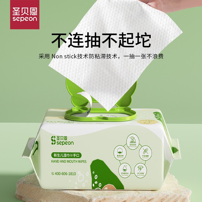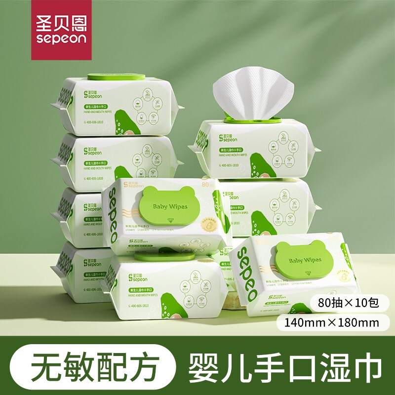 圣贝恩湿巾婴儿湿纸巾加大加厚手口整箱80抽大包装加厚儿童湿巾