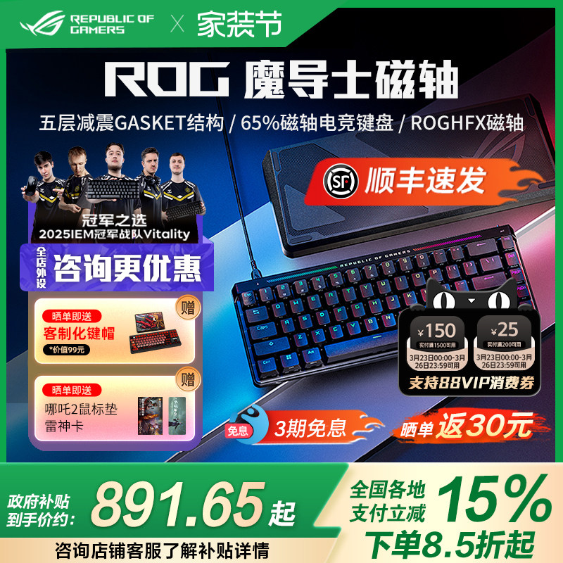 ROG魔导士Ace HFX磁轴ABS有线68键键盘华硕玩家国度机械键盘PBT
