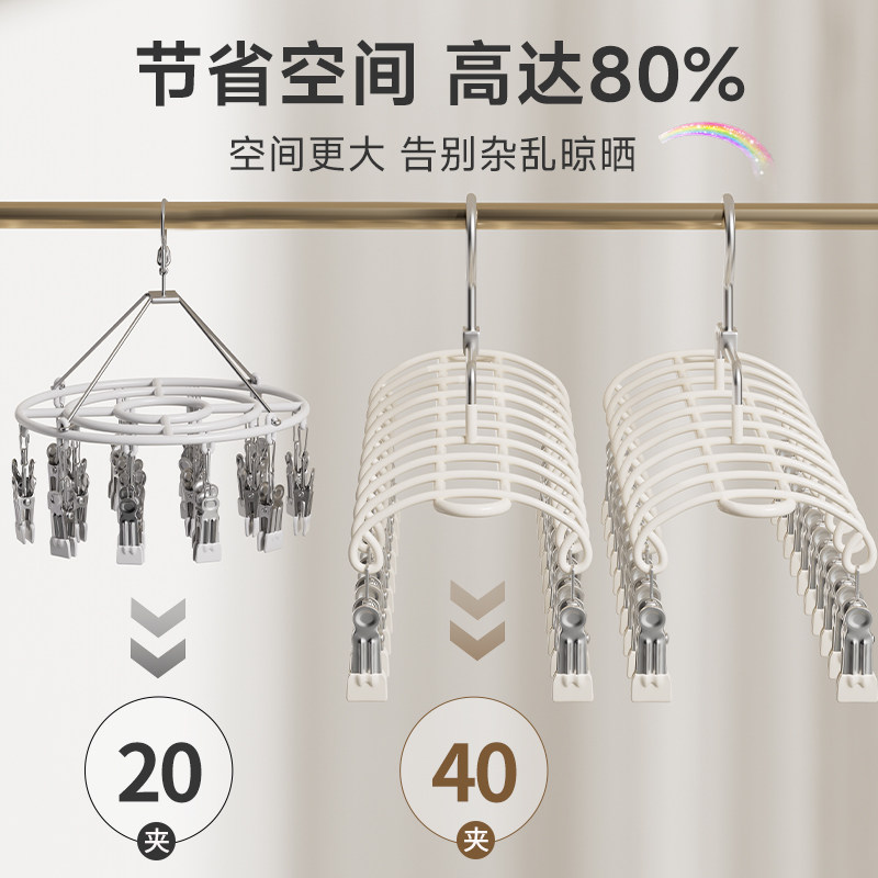 袜子晾衣架带夹子不锈钢家用阳台宿舍晒内衣内裤神器防风婴儿袜夹