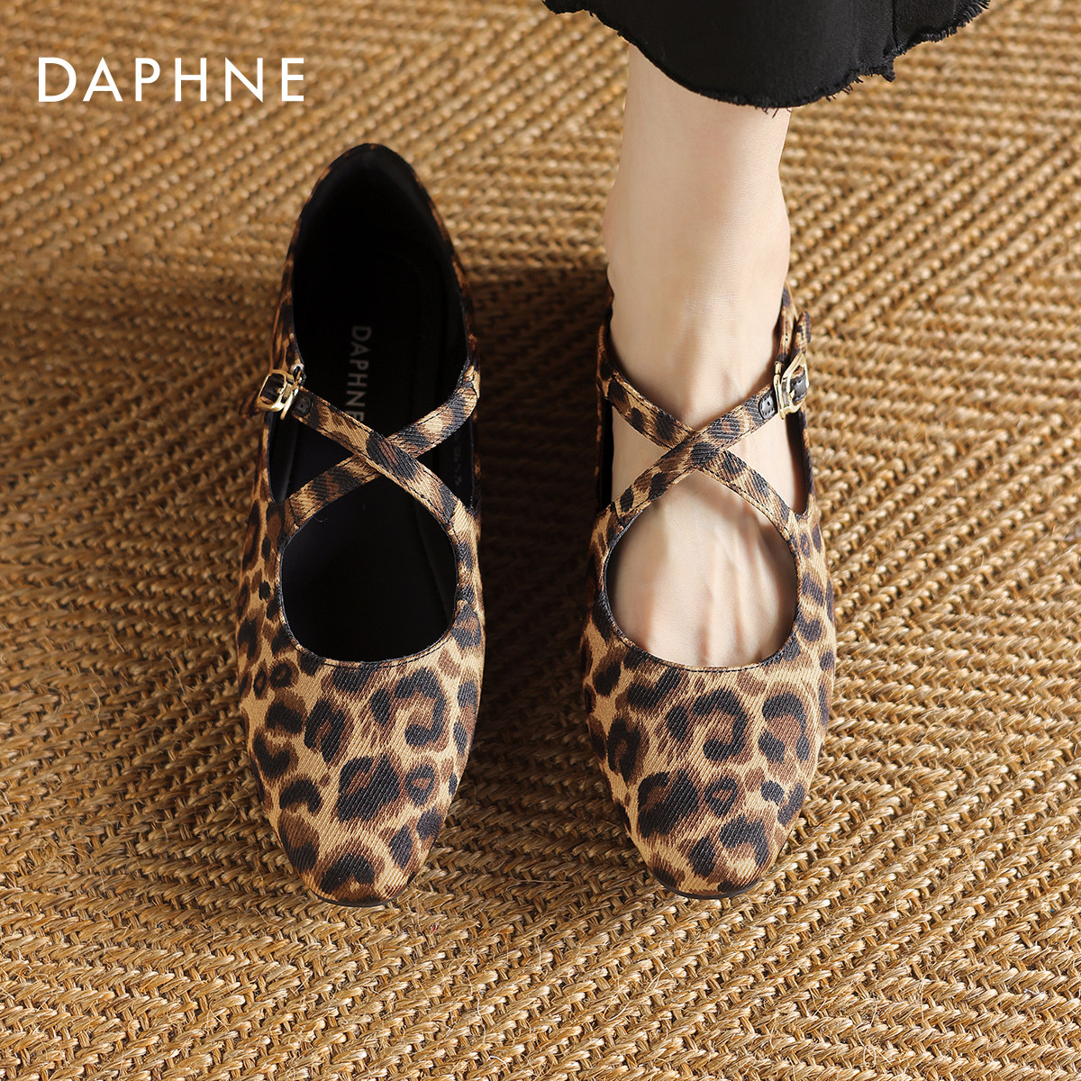 达芙妮豹纹单鞋女2025新款法式复古平底鞋软底皮鞋浅口玛丽珍女鞋