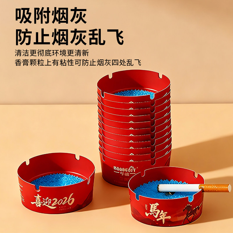 2026马年新年喜庆自带灭烟沙烟灰缸一次性加厚加硬家用酒店客厅