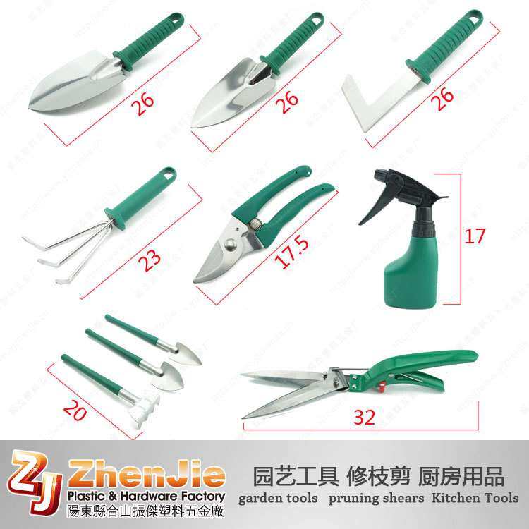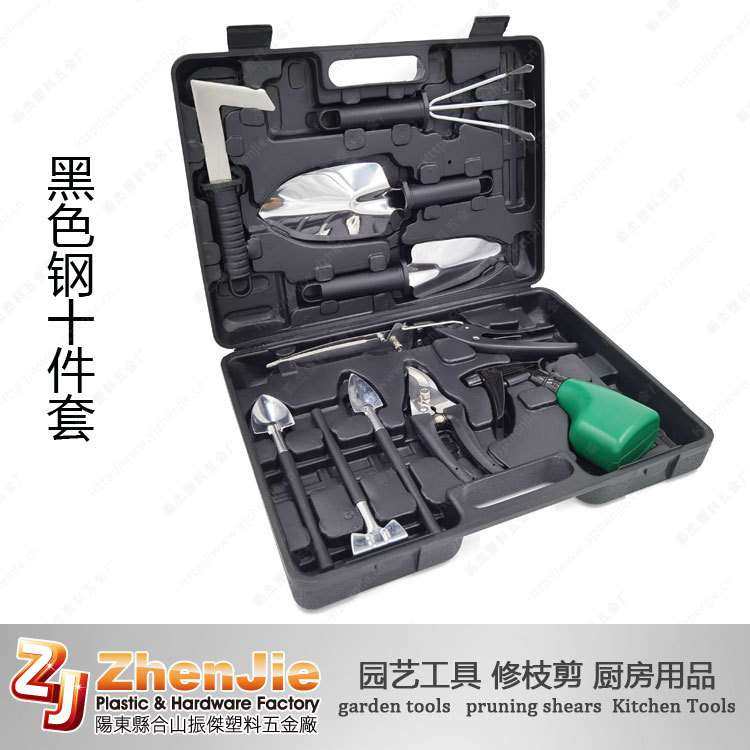 现货新款不锈钢十件套园艺工具套装花园用具铲耙锹剪喷壶园林用品