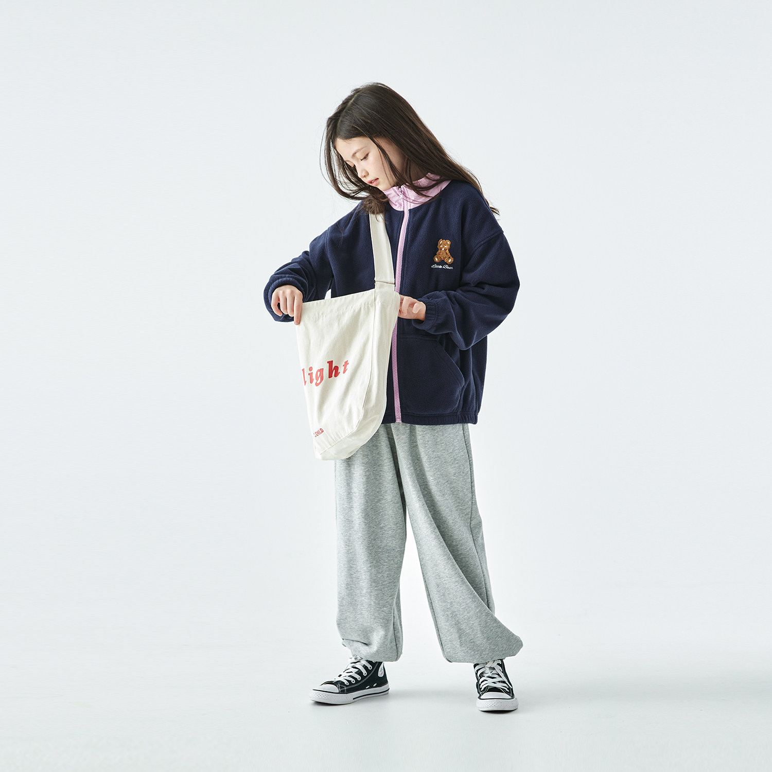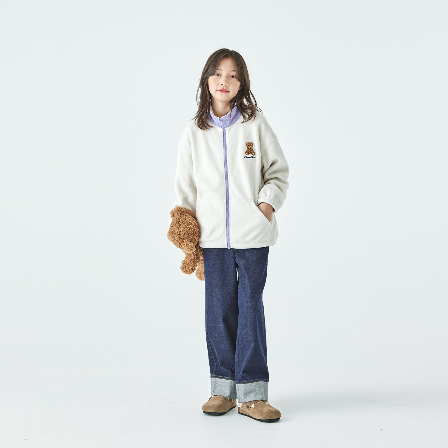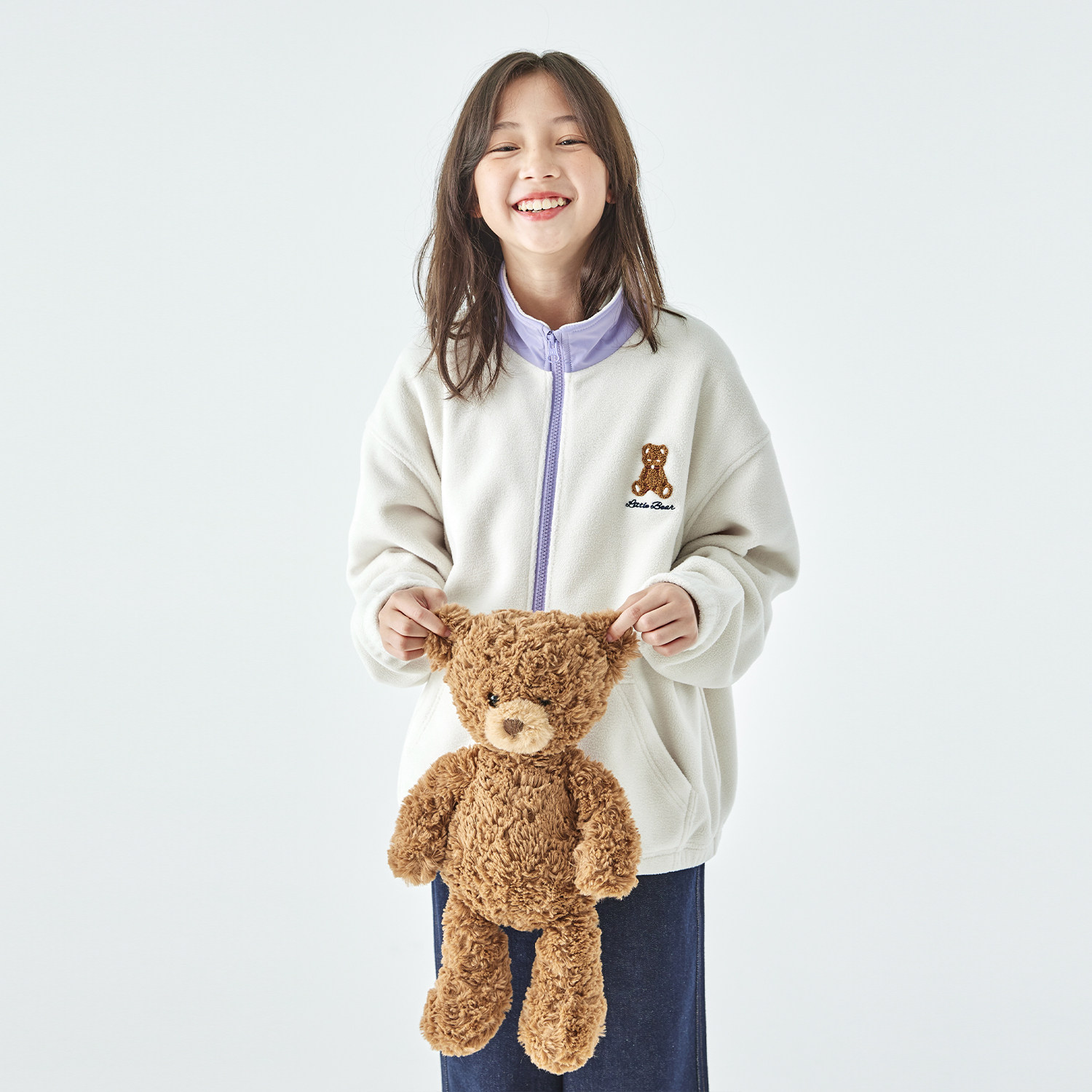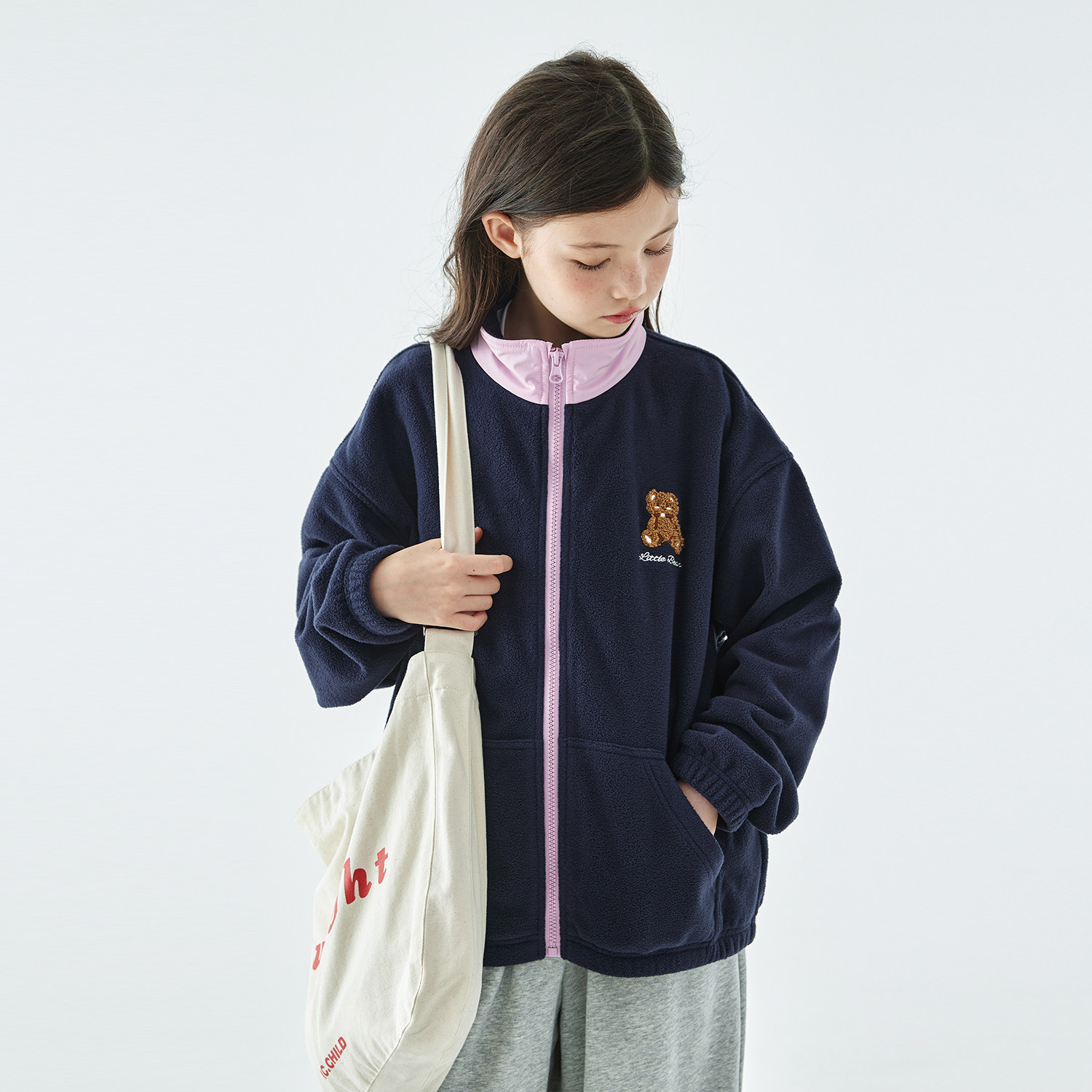 棵初2025年秋冬新款亲子中大女童摇粒绒外套立体小熊绣花宽松上衣
