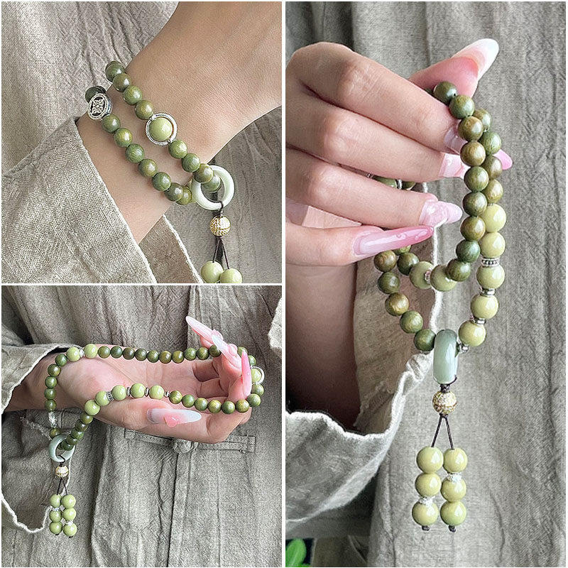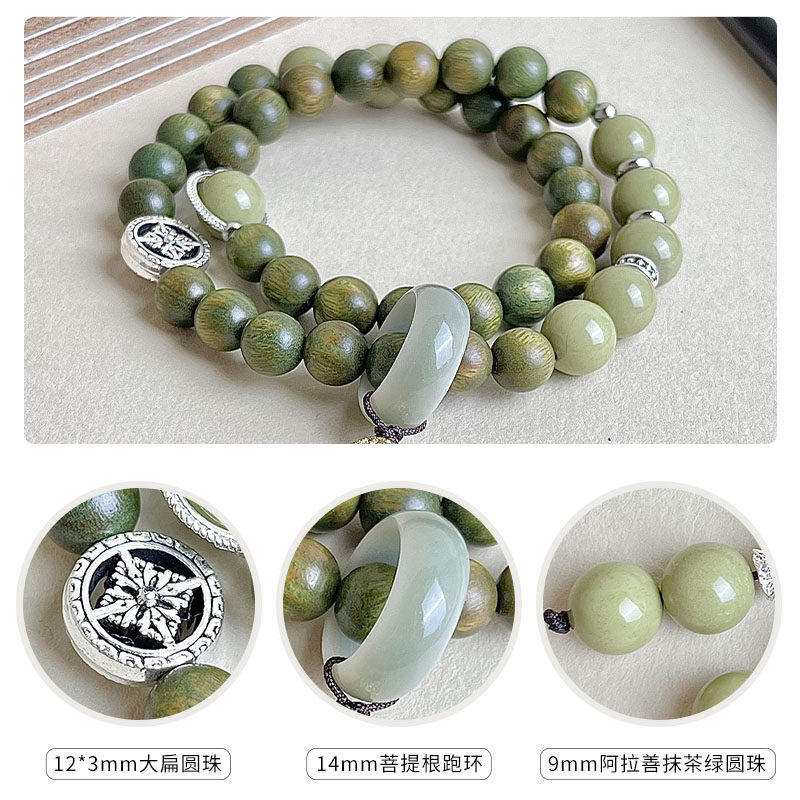 天然绿檀木手串饰品男文玩静心檀香佛珠念珠盘玩双圈手持女