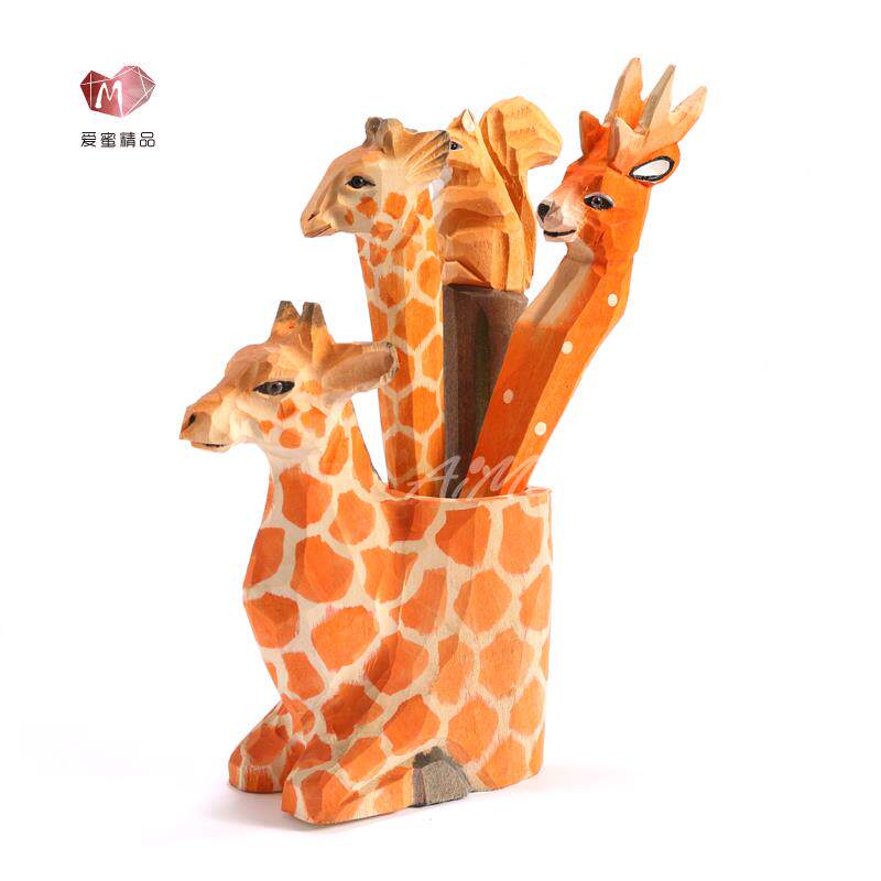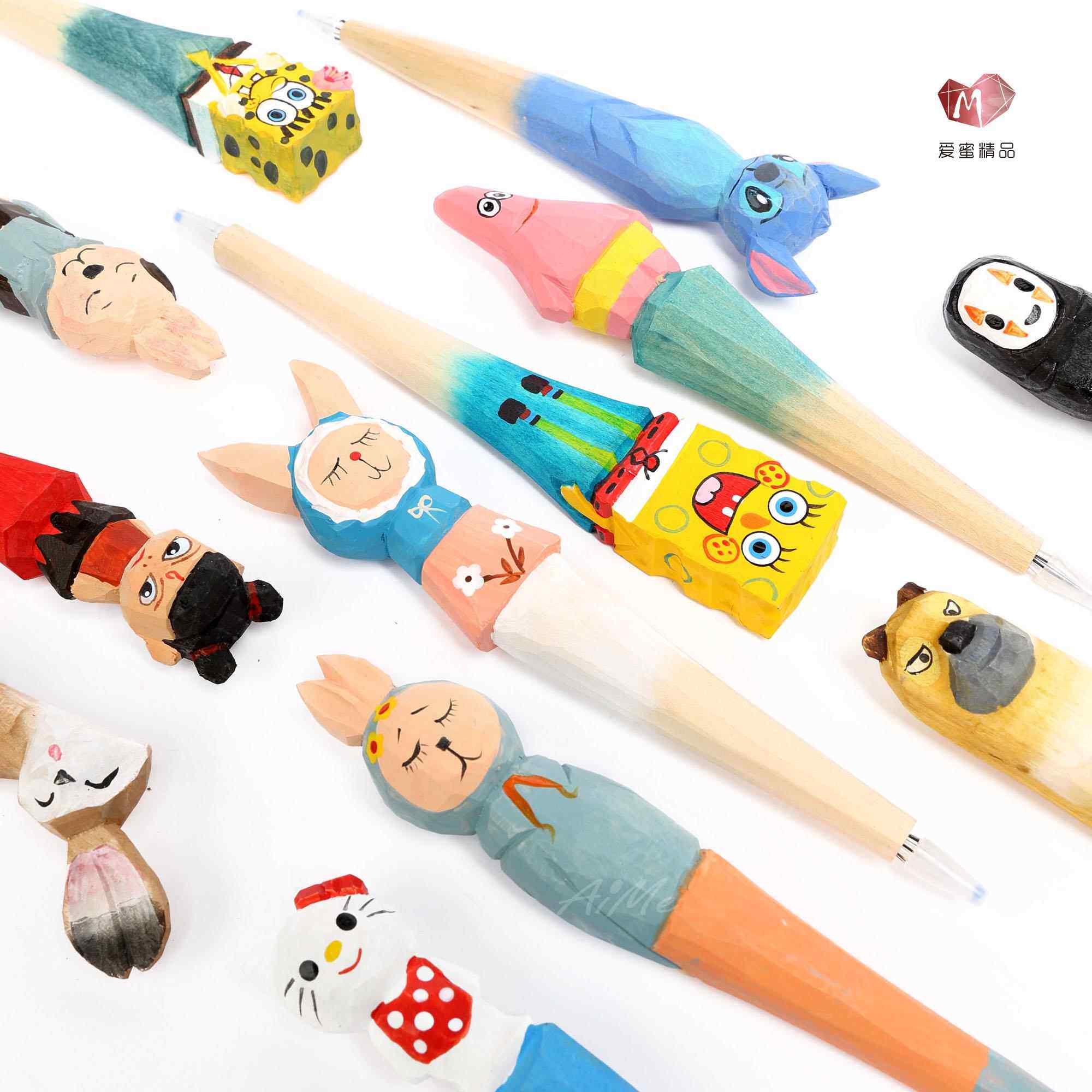 木头笔可爱卡通动物木雕笔工艺刻字中性笔学生创意笔新年礼物笔