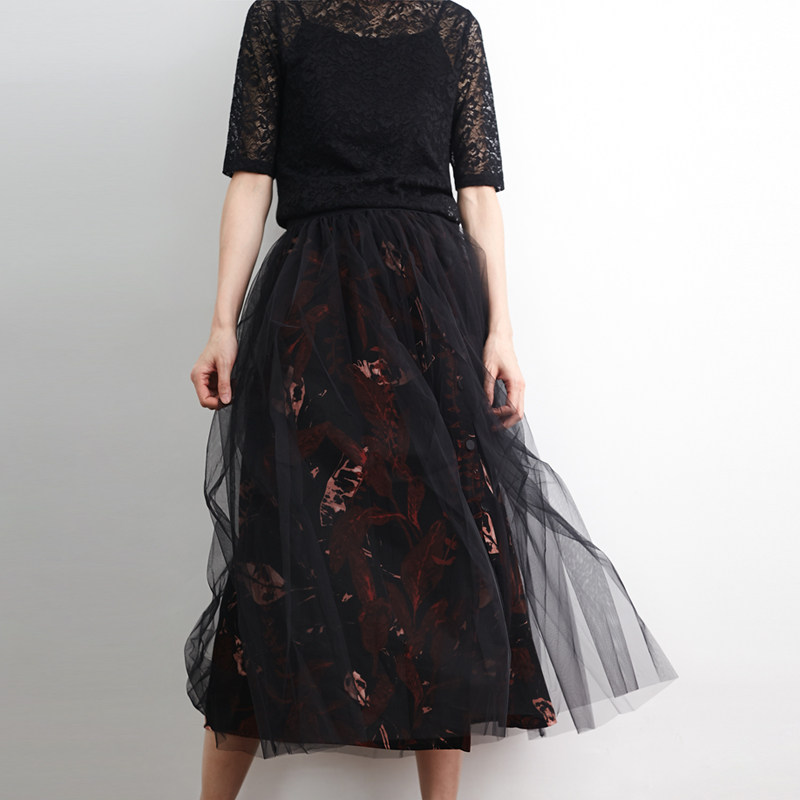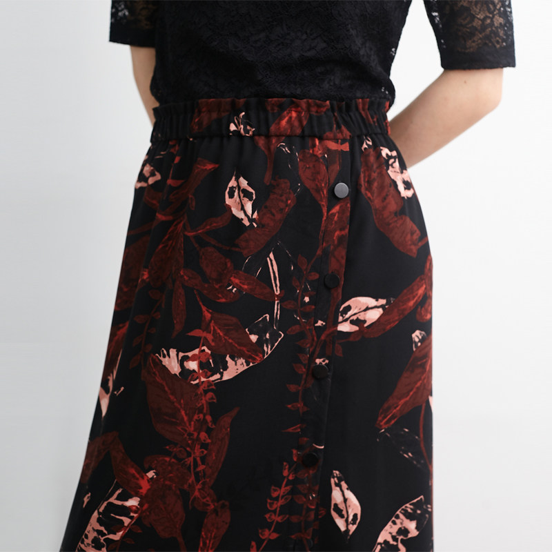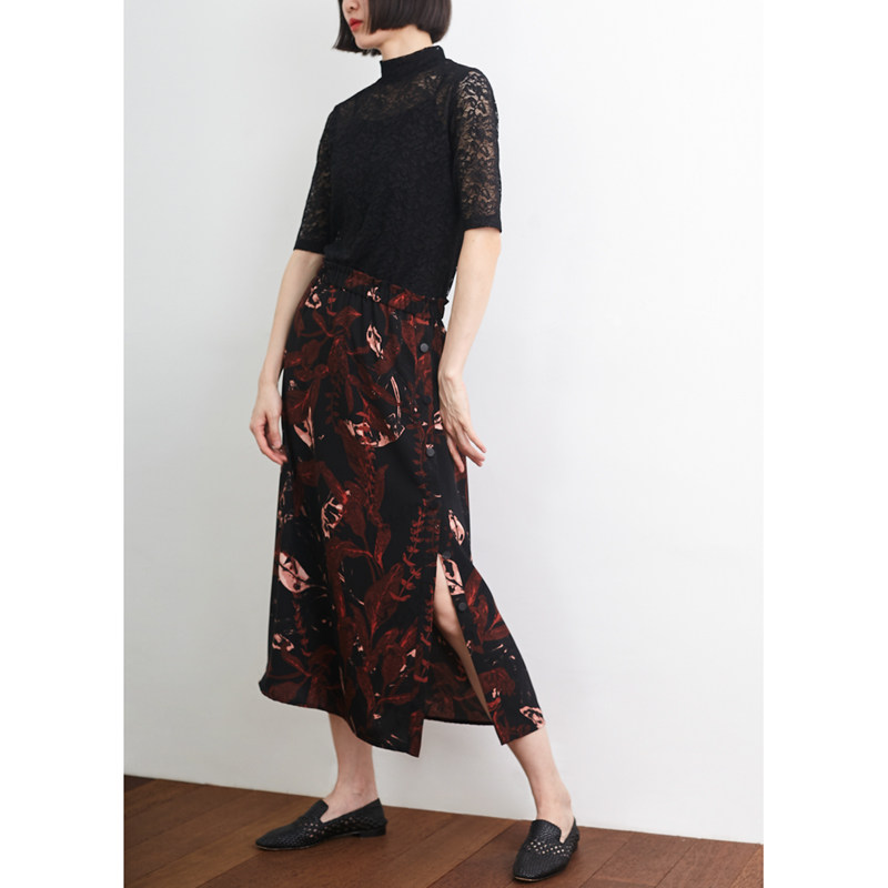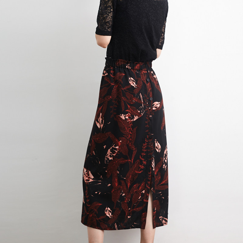 清仓/艺术印花复古开叉半身裙 小鱼春夏百搭气质中长款文艺a字裙
