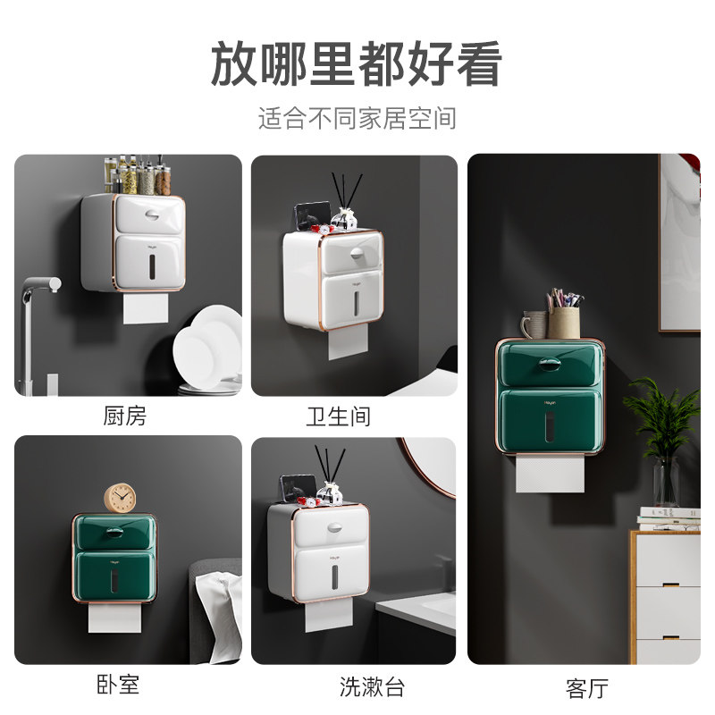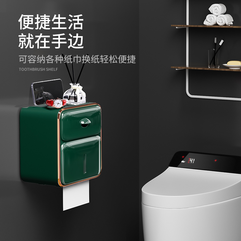卫生间纸巾盒轻奢高档免打孔卷纸架卷纸盒壁挂式抽纸盒厕所厕纸盒