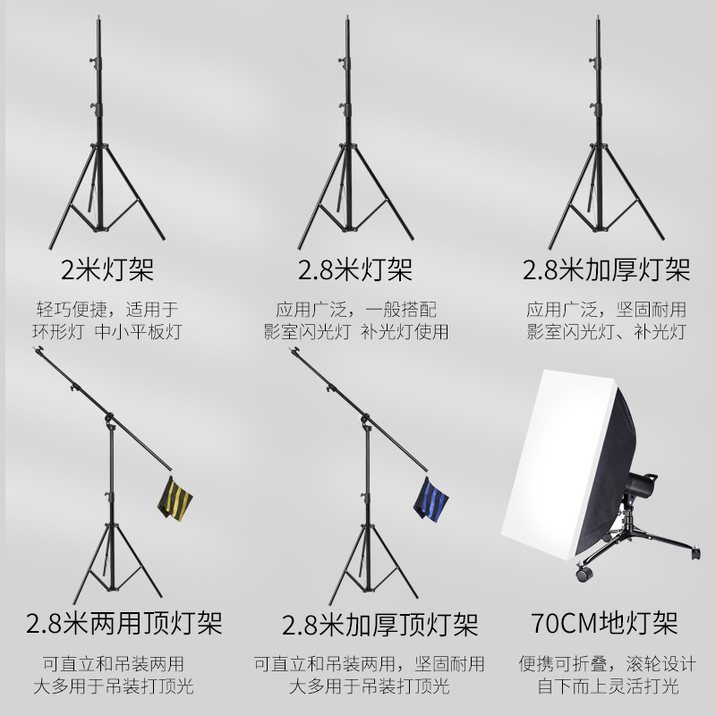 摄影灯支架2.8米便携支架顶灯支架视频直播三脚架影视外拍影室灯闪光补光灯外拍灯柔光箱器材支架三角架