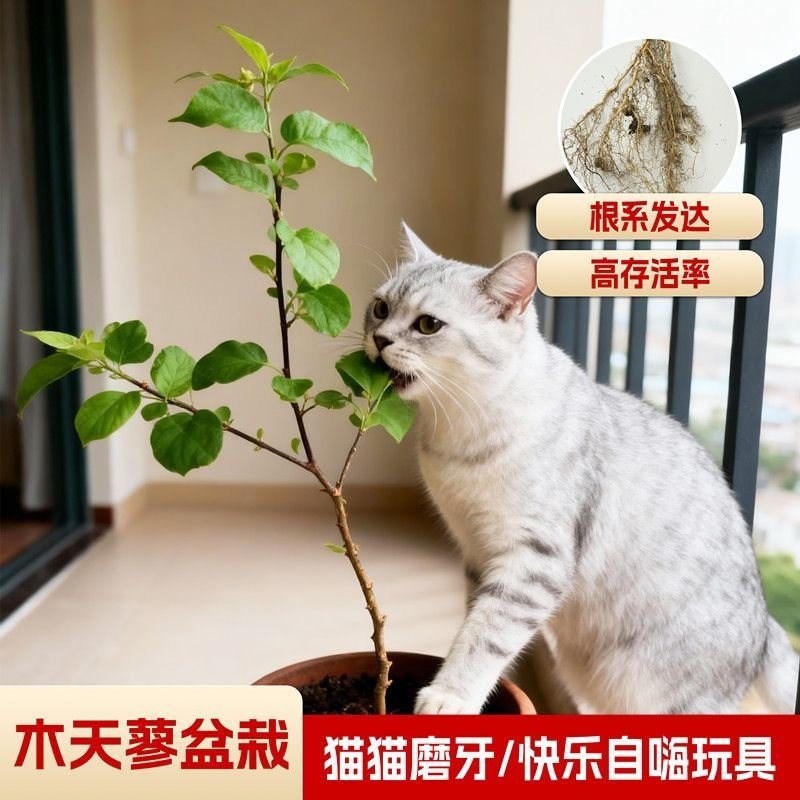 天然木天蓼幼苗树枝室内喵咪磨牙棒自嗨神器猫薄荷猫玩具幼苗种植