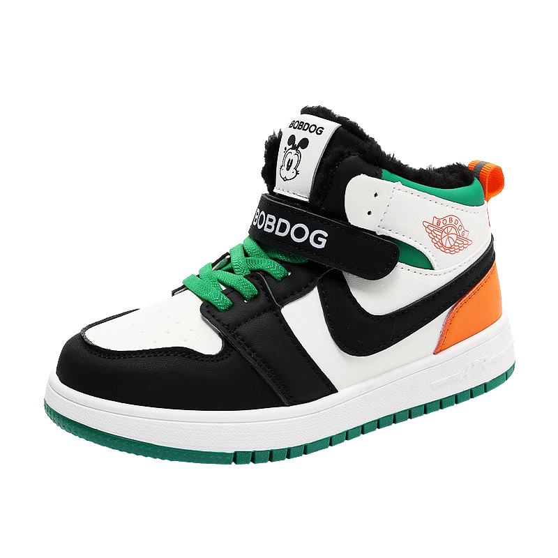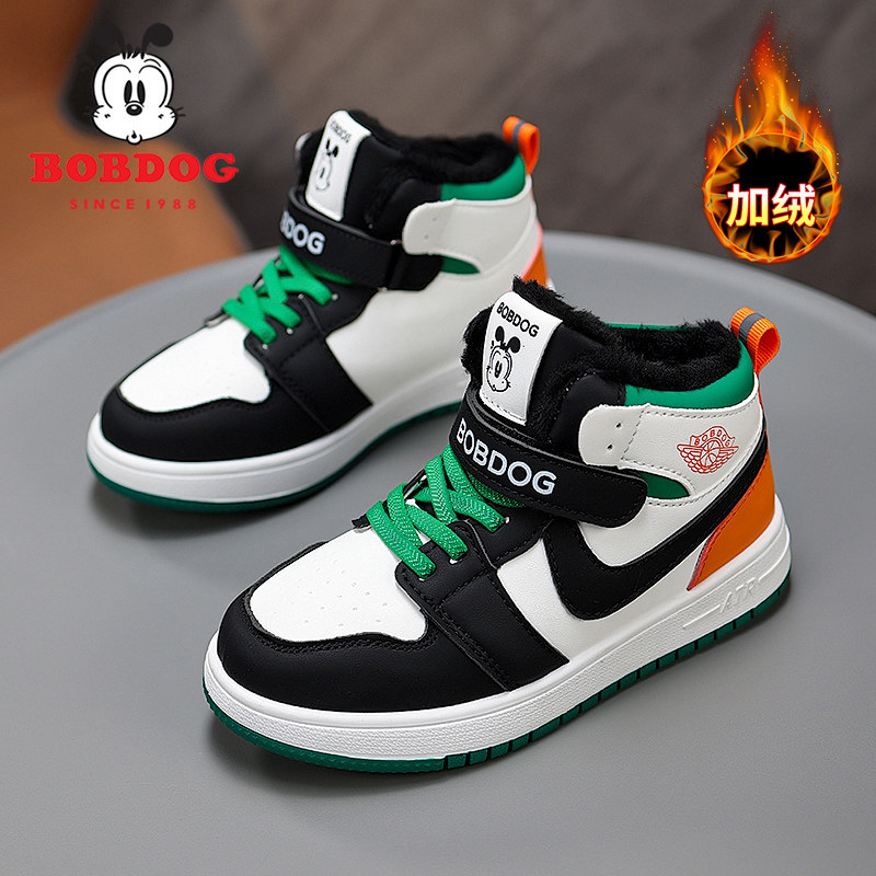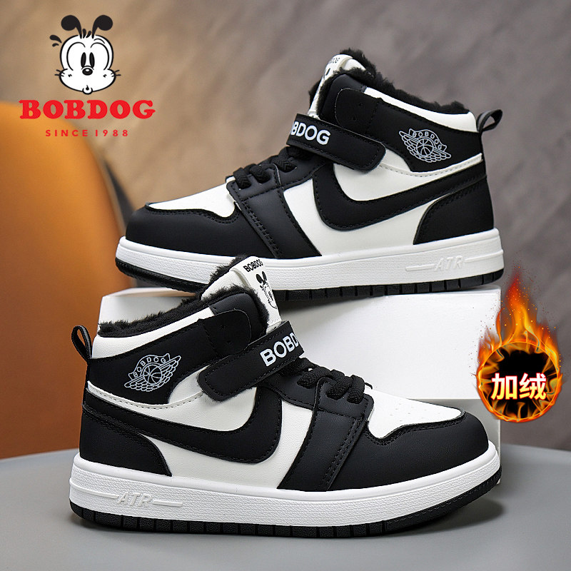 巴布豆男童鞋子2025秋冬季新款皮面加绒大棉鞋儿童二棉运动鞋高帮