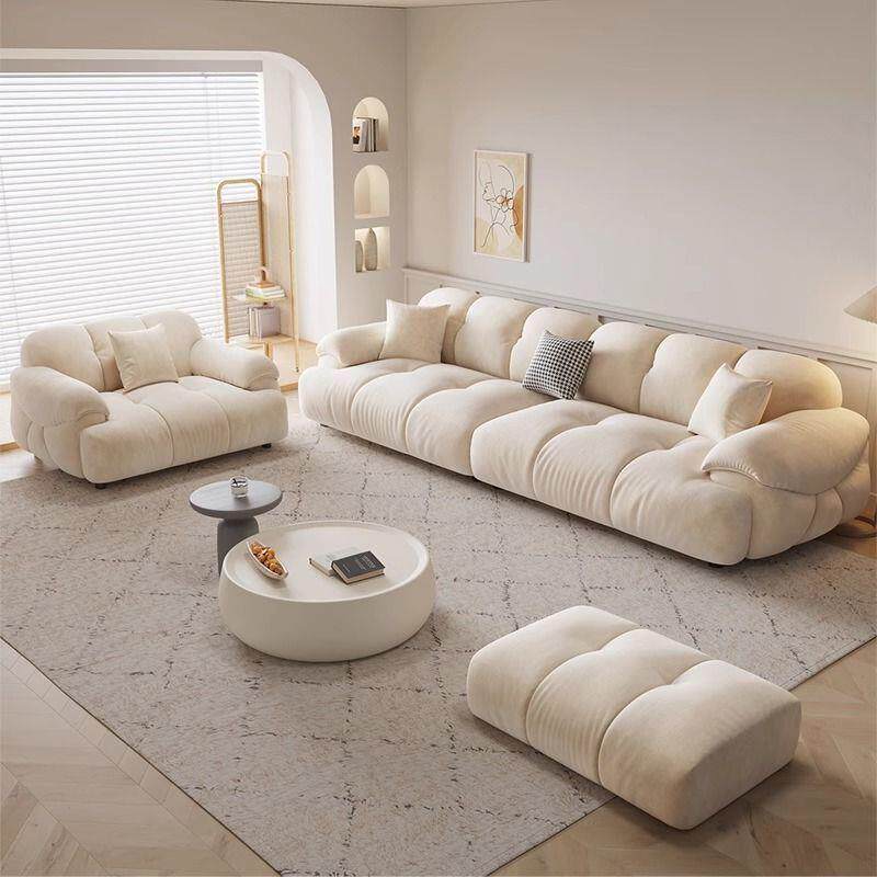 猫爪布艺沙发客厅家用奶油风轻奢大小户型直排棉花糖沙发