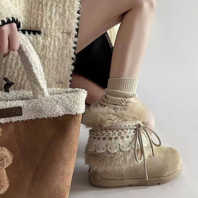 ivaj雪地靴女款2026冬季新款潮流时尚保暖百搭小个子厚底毛毛靴冬