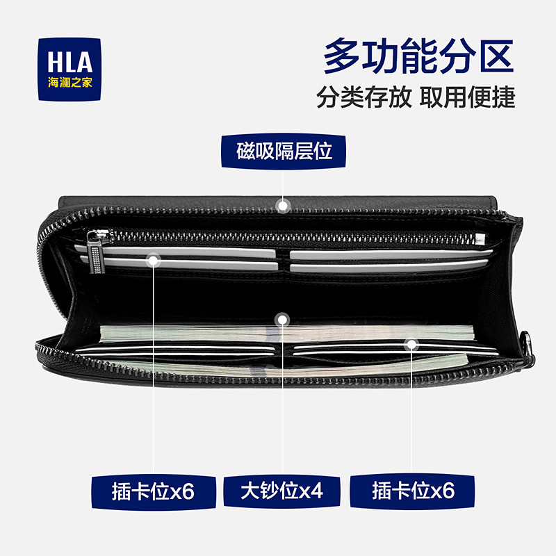 【新年元旦礼物】HLA/海澜之家男士钱包真头层牛皮长款送老公爸爸