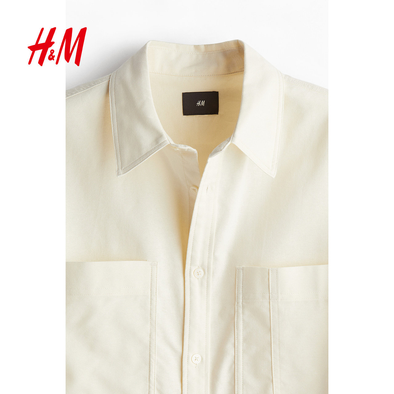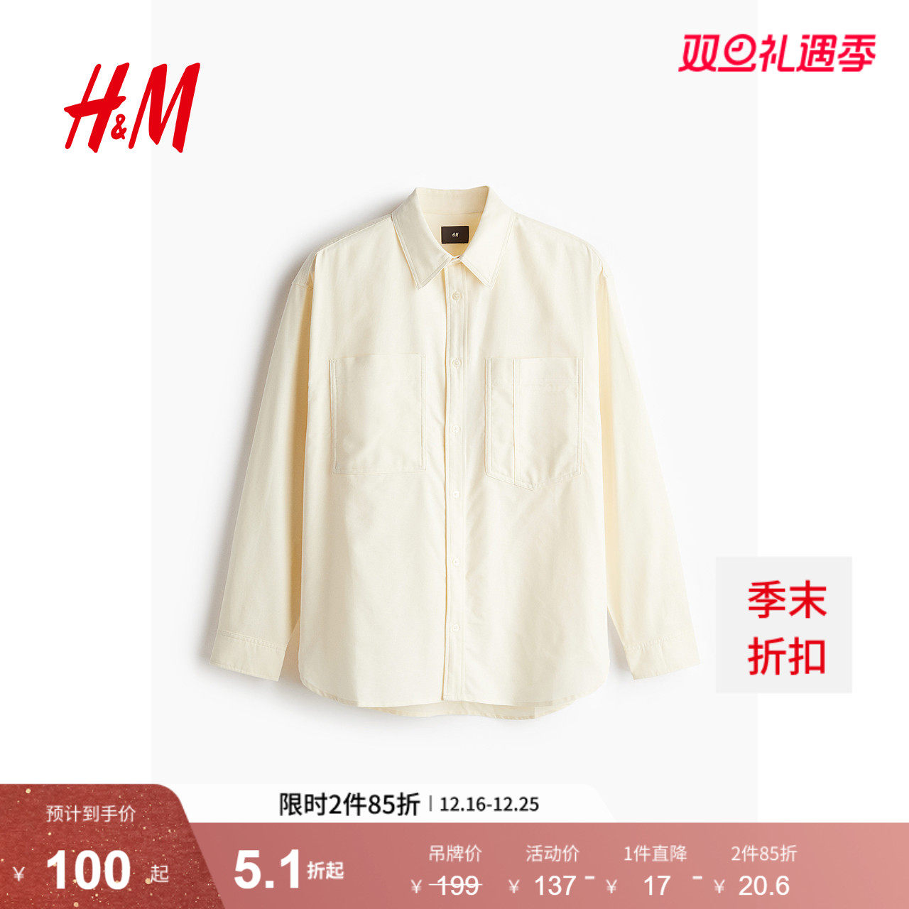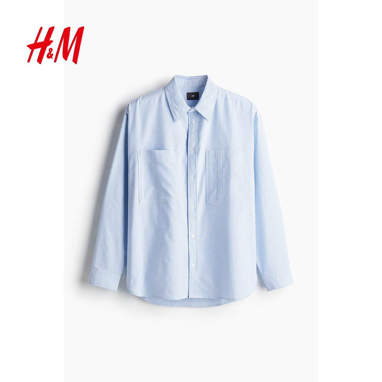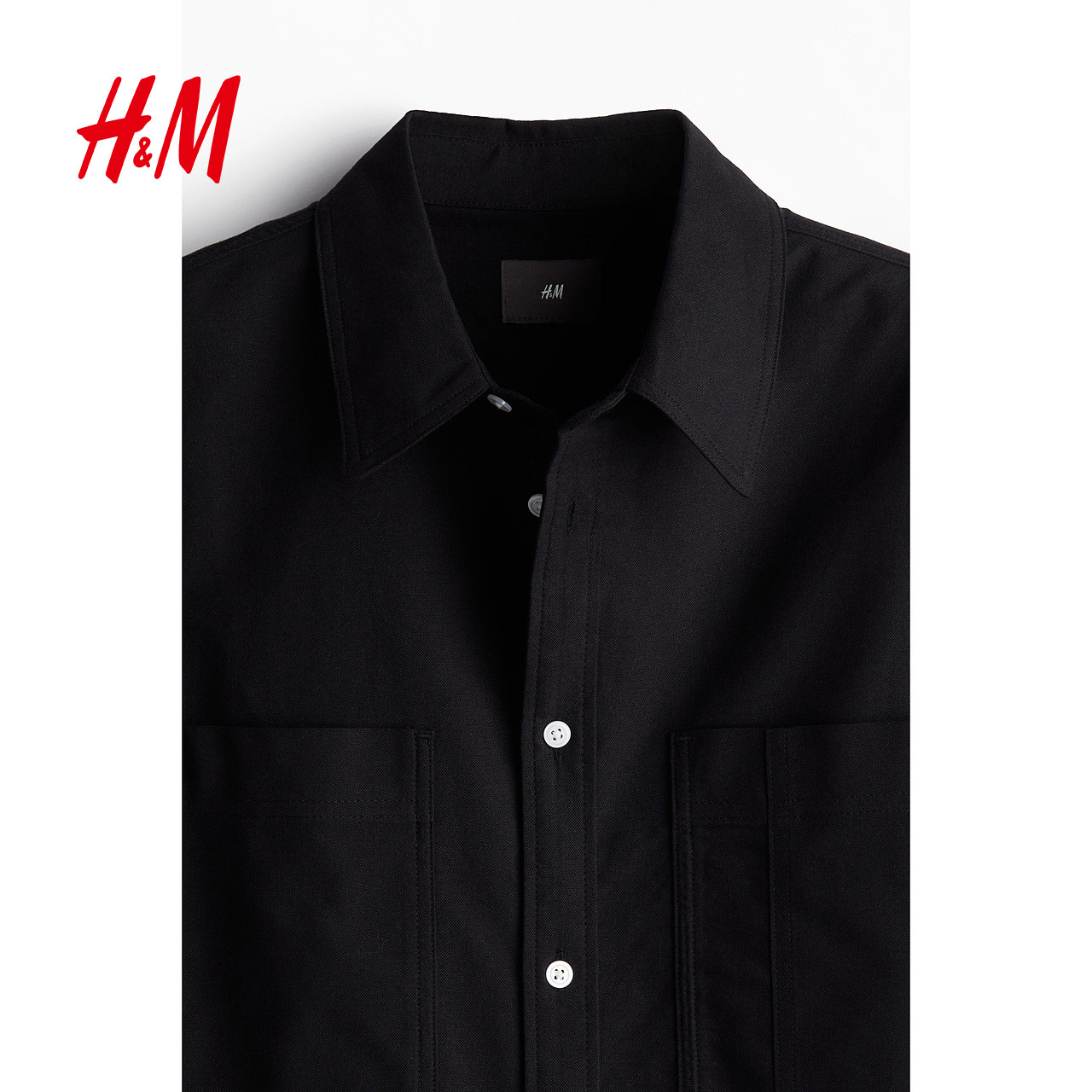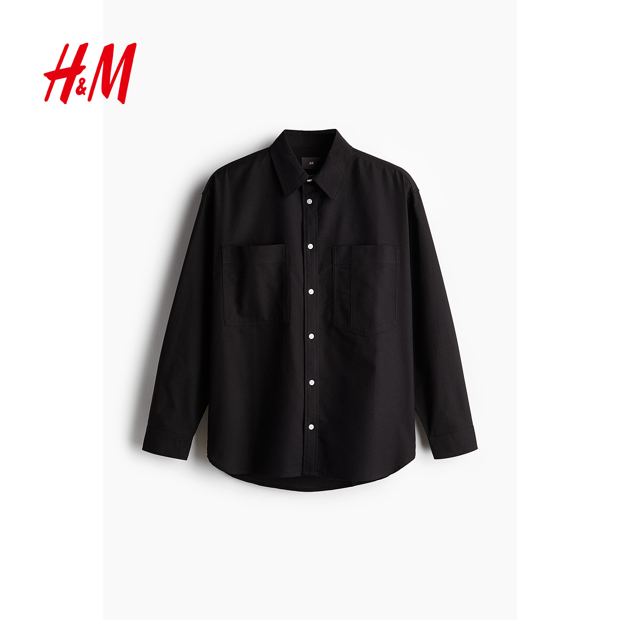 HM男装衬衫冬季长袖衬衣商务正装宽松翻领休闲上衣薄外套1235550