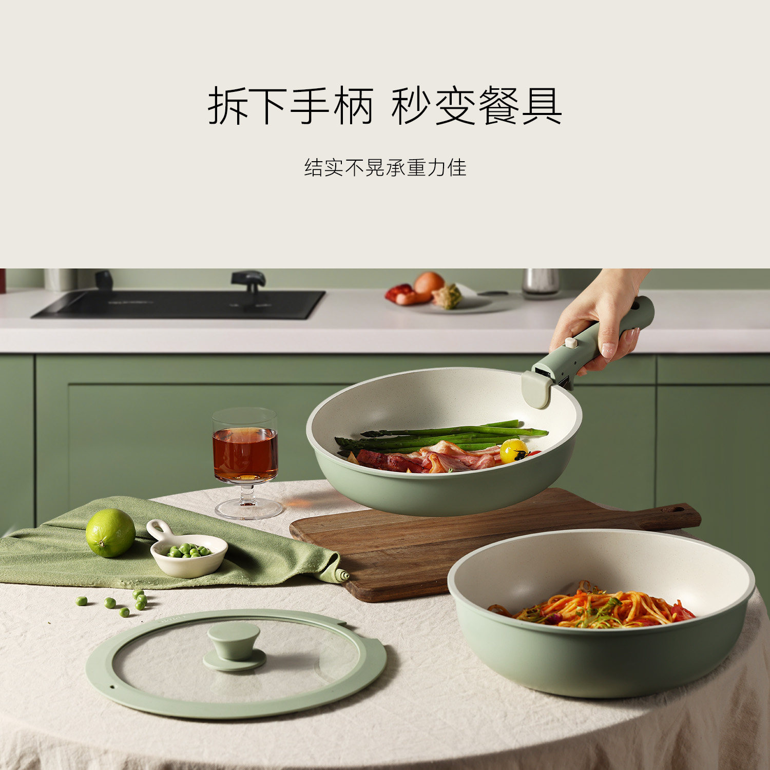 有钛可拆不粘锅 含钛一级不粘 小厨房好收纳