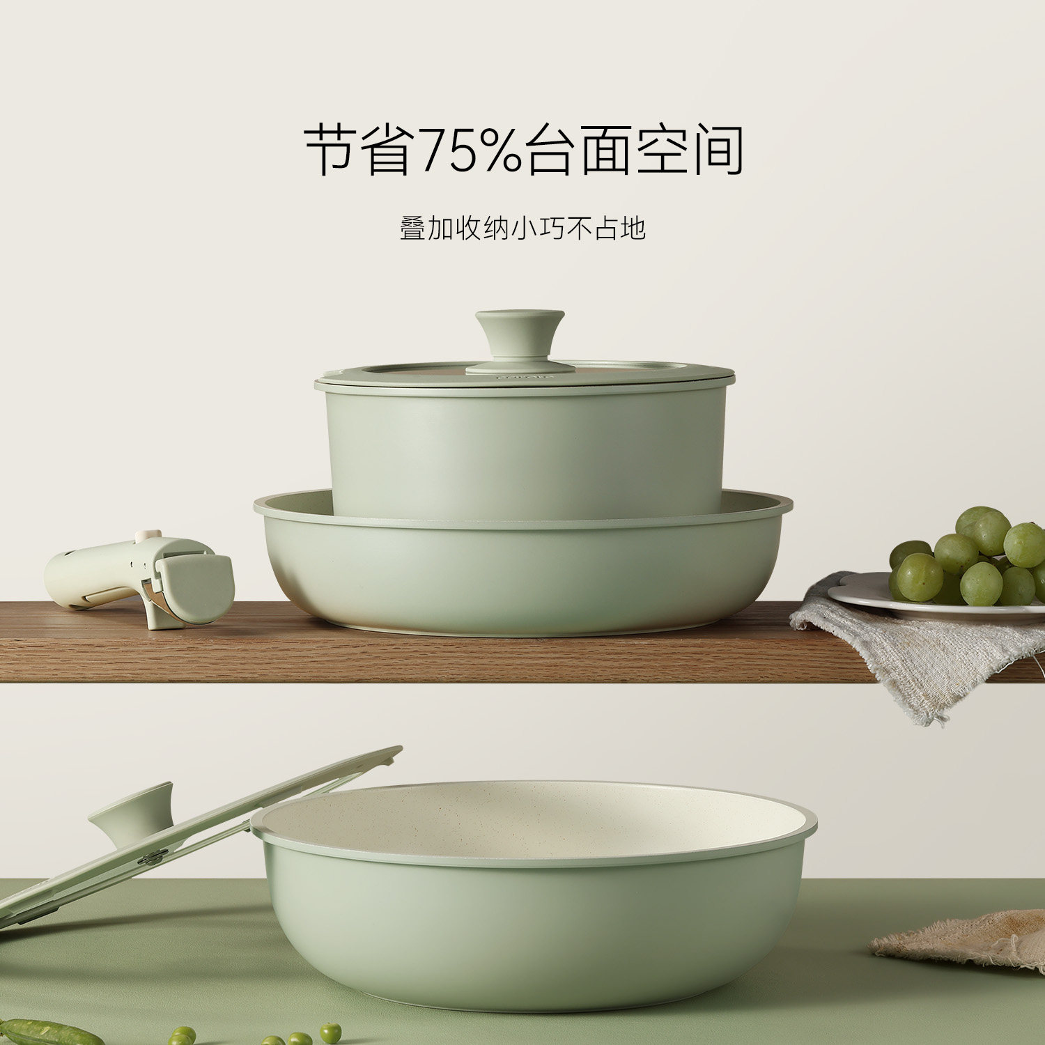 卡罗特不粘锅可拆卸手柄锅家用钛炒锅可放洗碗机锅具套装全套家用