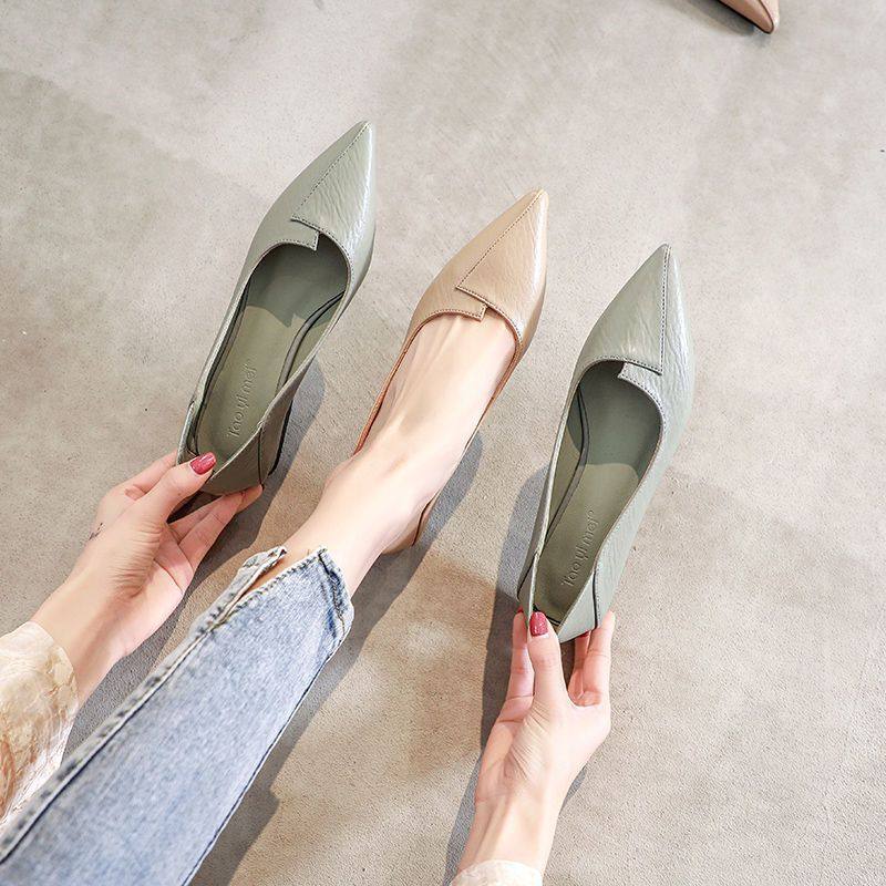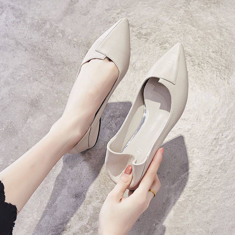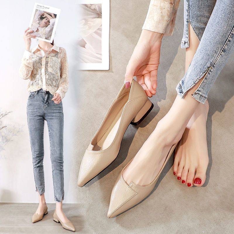 中跟女士皮鞋四季粗跟女夏鞋子2025年新款春秋尖头单鞋软皮奶奶鞋