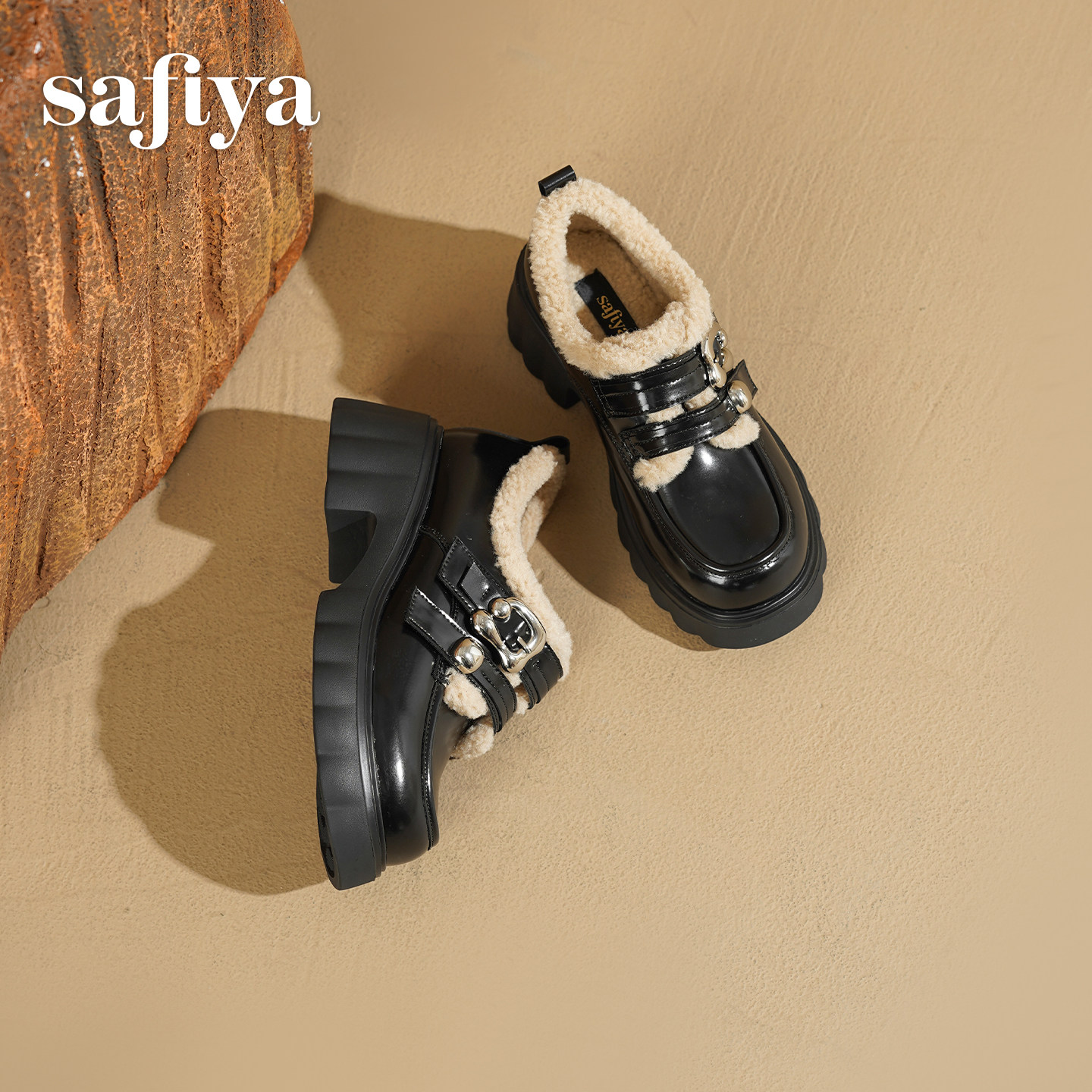 Safiya/索菲娅冬季新品保暖增高厚底加绒英伦懒人小皮鞋乐福鞋女