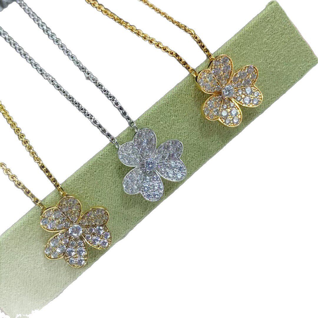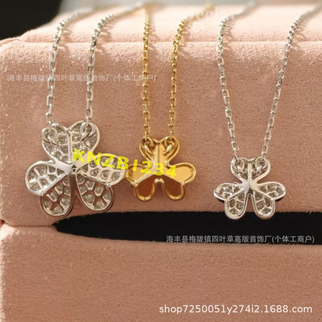 18K玫瑰金黄金白金mini小号三叶草项链满钻四叶草锁骨链吊坠