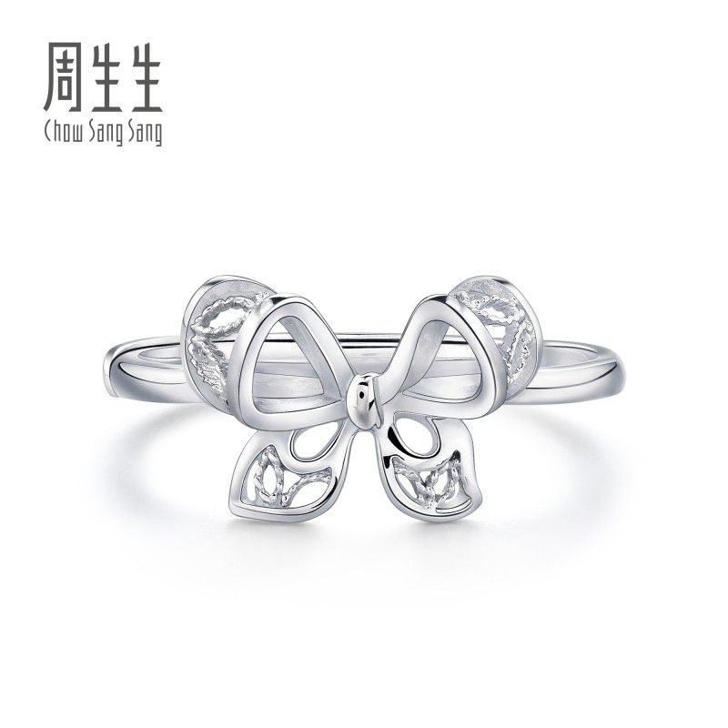周生生Pt950铂金戒指在逃公主蝴蝶结戒指开口女戒手饰91475R
