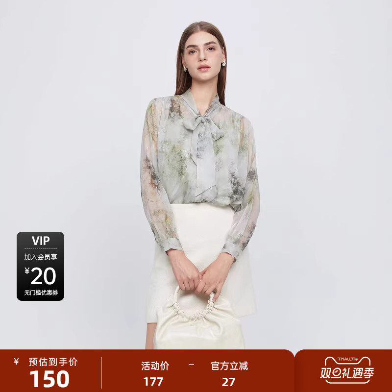sdeer圣迪奥女装田园风系带印花两件套长袖衬衫S243Z0519