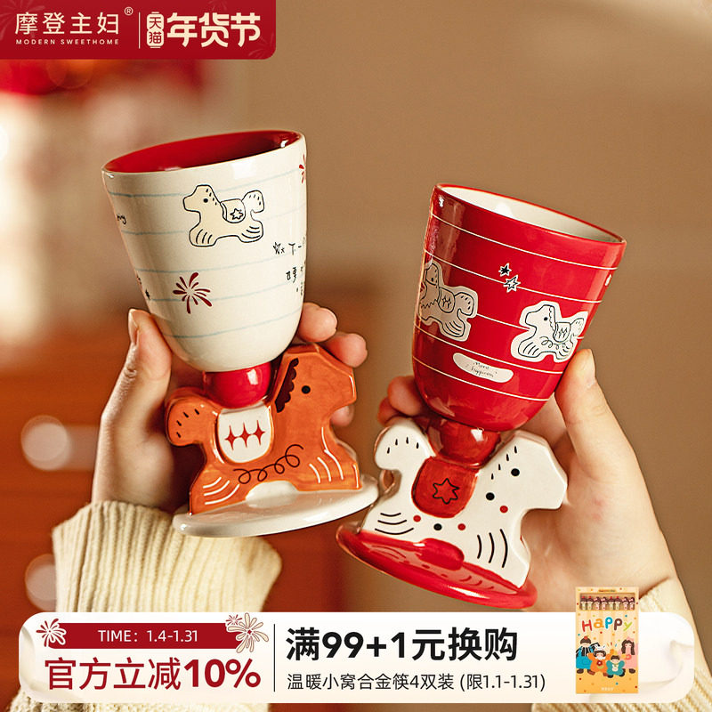 摩登主妇陶瓷马克杯新年本命年礼物生日红色水杯情侣对杯马年杯子
