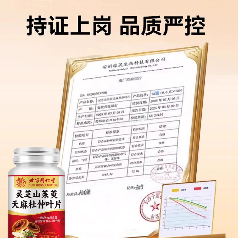 北京同仁堂灵芝山茱萸天麻杜仲叶片麻木片官方旗舰店正品健康作用