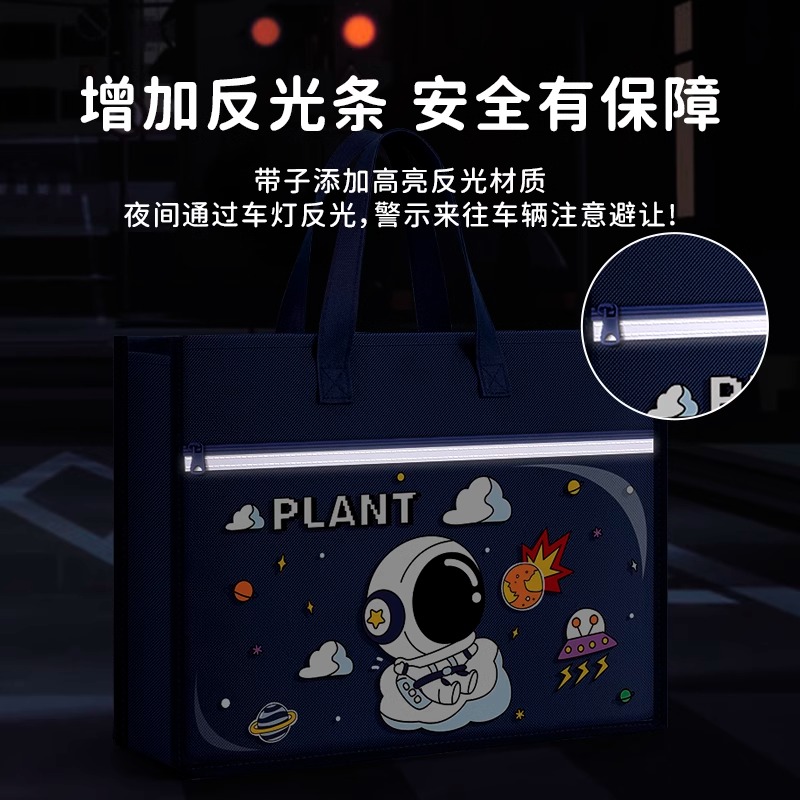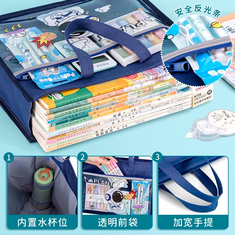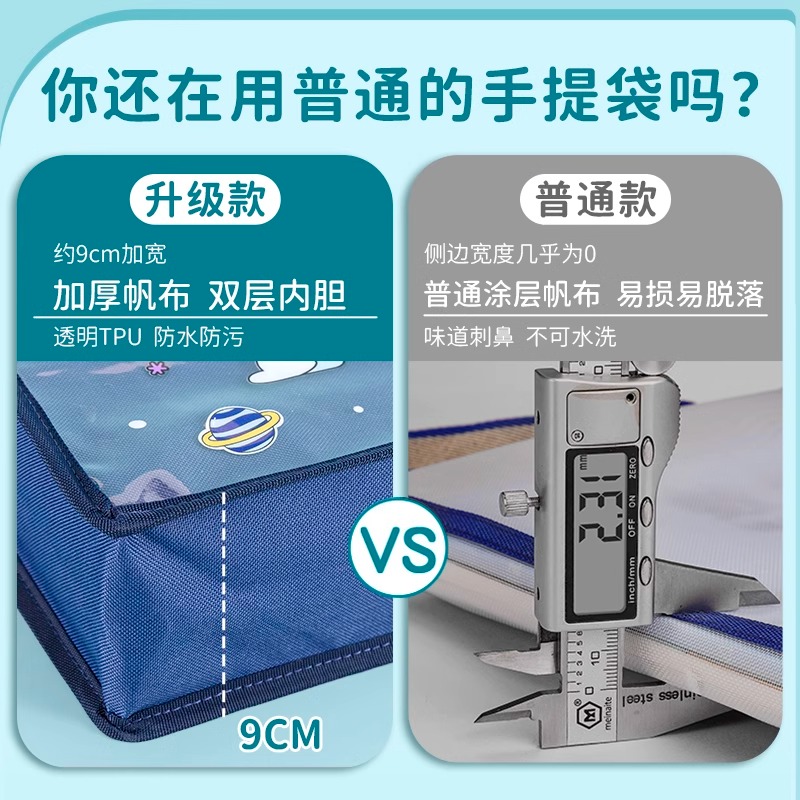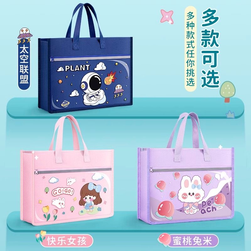 学生手提袋拎书补习袋大容量双层补课包美术袋女孩男孩帆布作业袋初中生文件袋手提包小学生一年级防水收纳袋