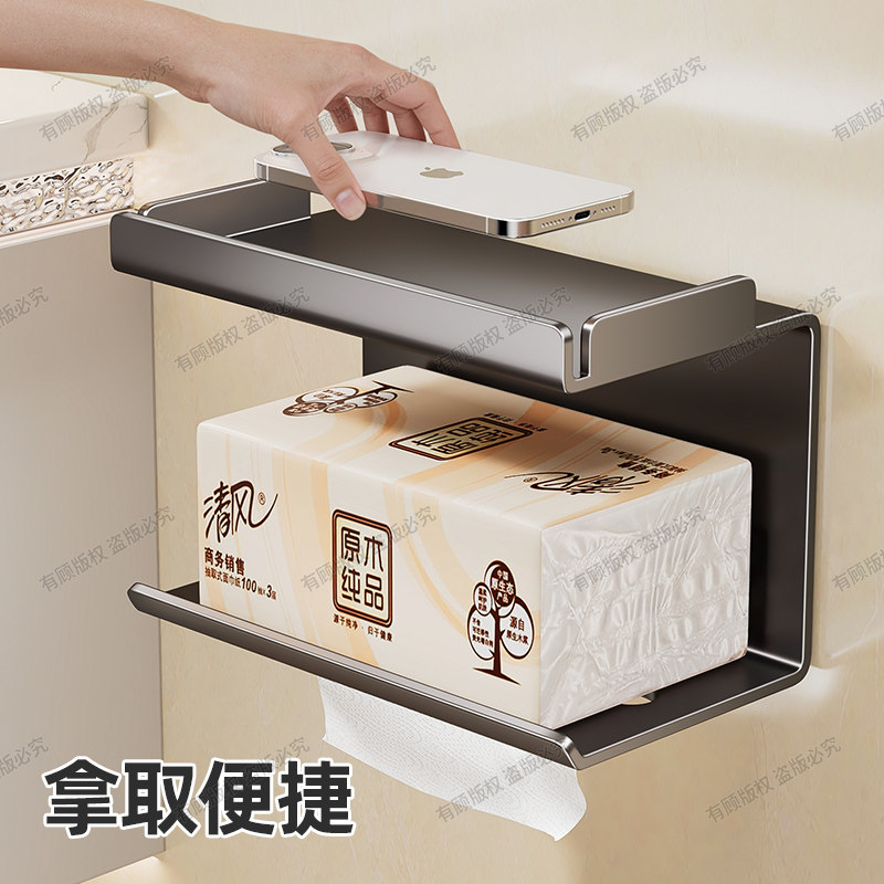 卫生间纸巾盒置物架壁挂式抽纸盒浴室免打孔厕纸架家用厕所卷纸架