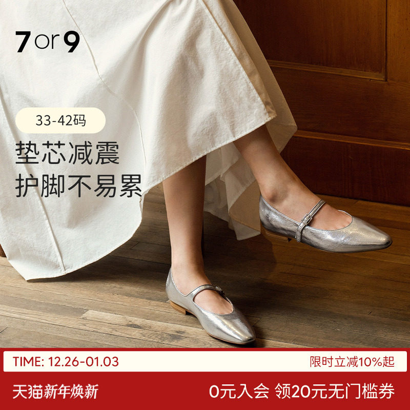 7or9玛丽珍鞋女鞋2025秋冬尖头大码法式通勤平底鞋银色单鞋咖啡糖