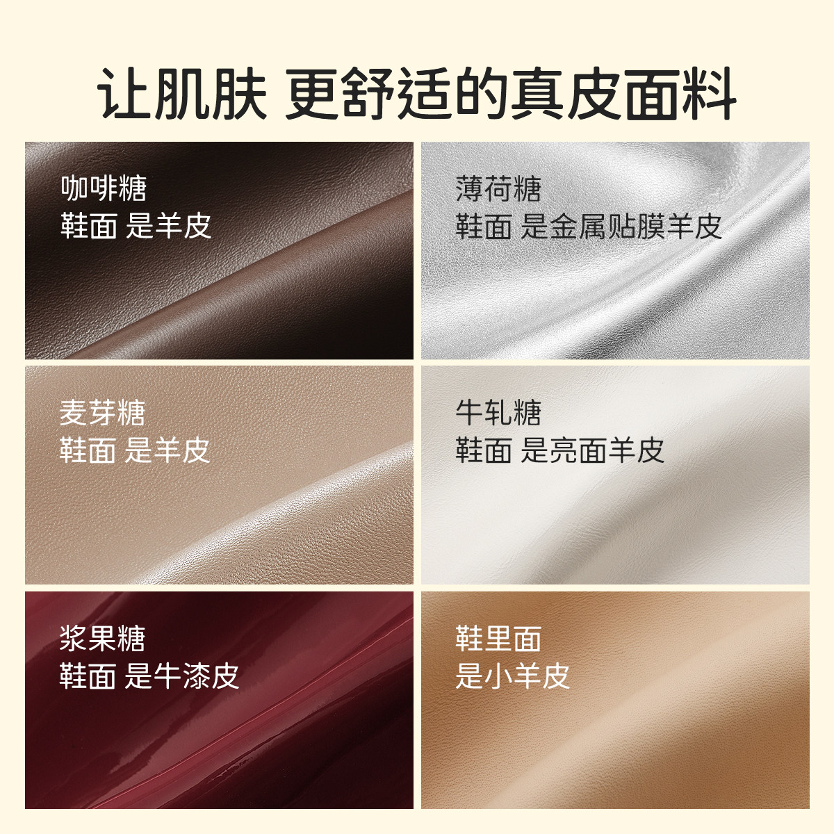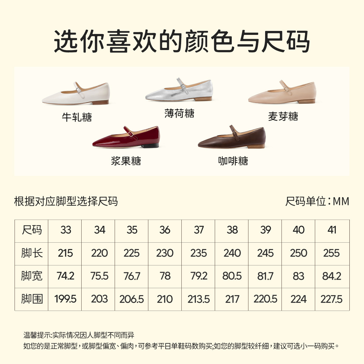 董洁同款真美诗摩卡慕斯2025秋新款羊皮软底芭蕾玛丽珍单鞋女