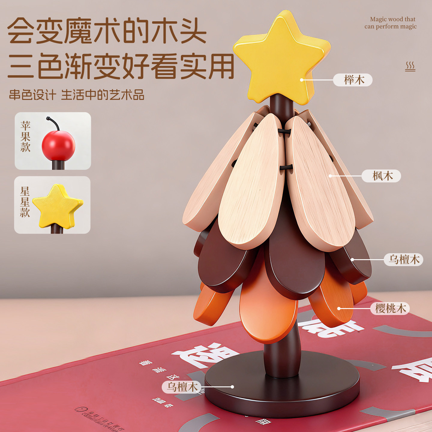 圣诞树隔热垫创意餐垫桌杯垫实木防烫耐高温锅垫餐边柜摆件装饰品