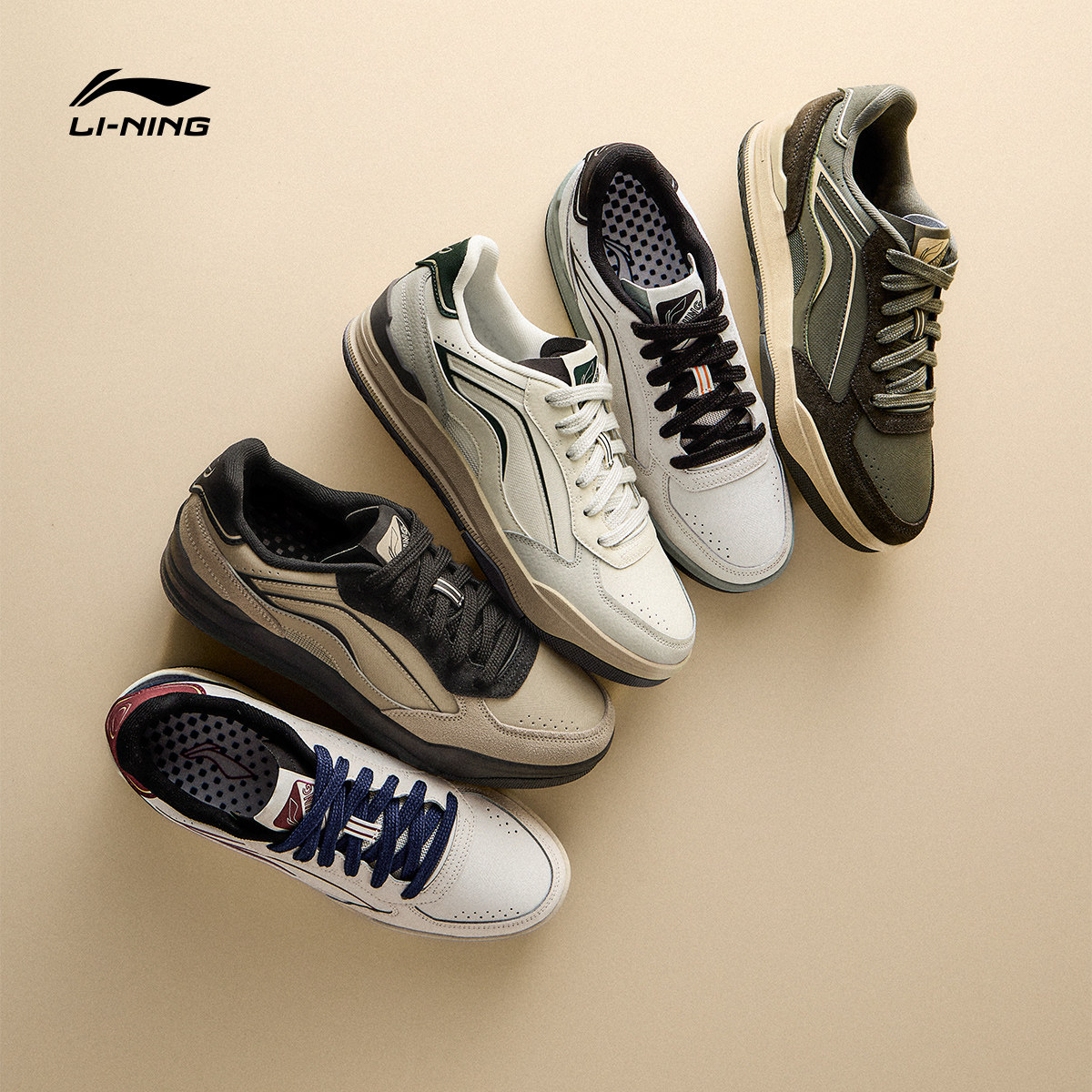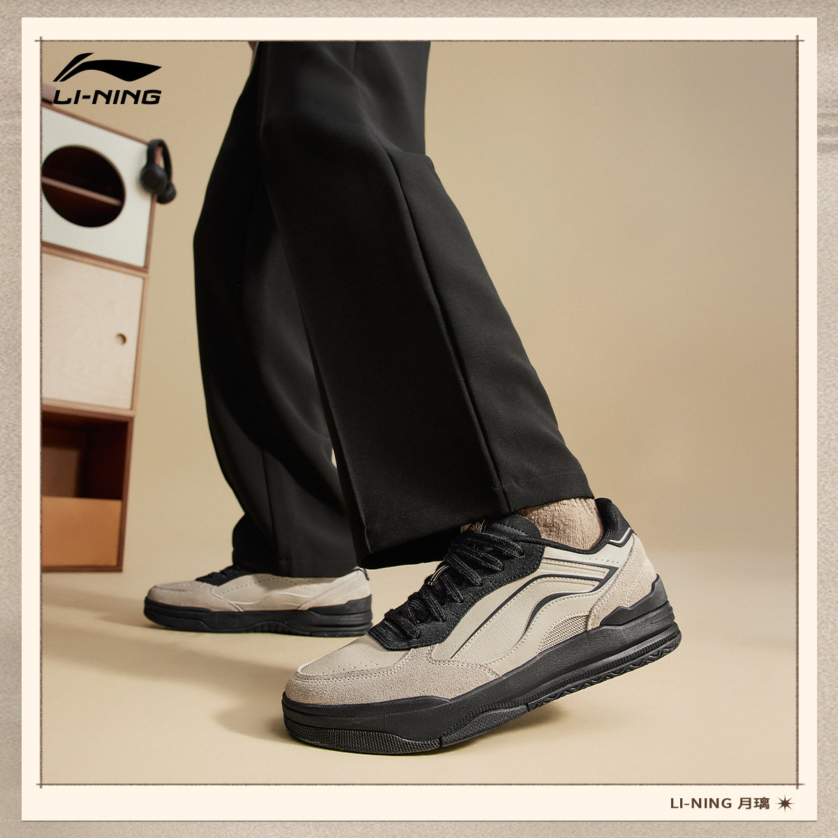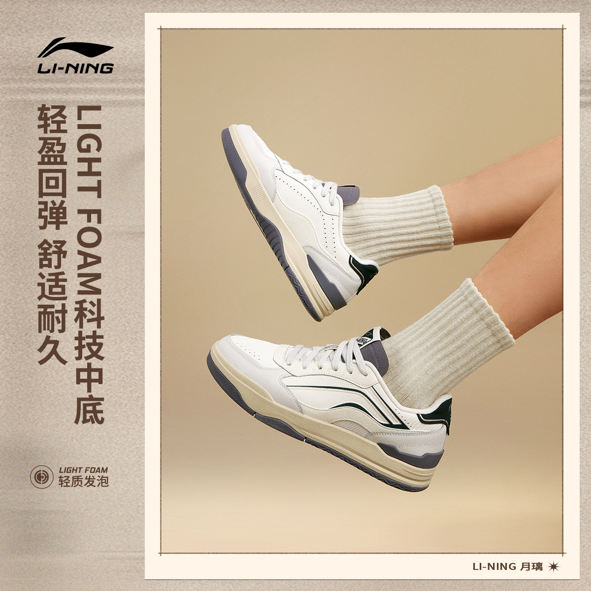 李宁月璃丨板鞋男鞋新款小白鞋美式低帮学生休闲鞋轻便软底运动鞋