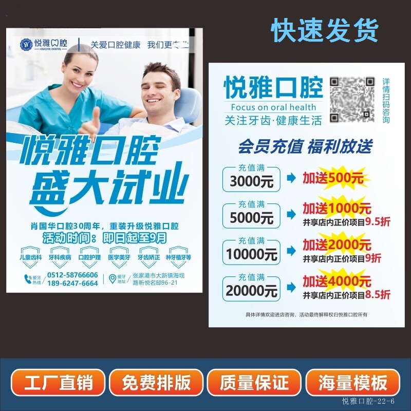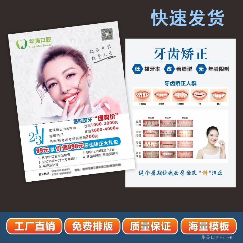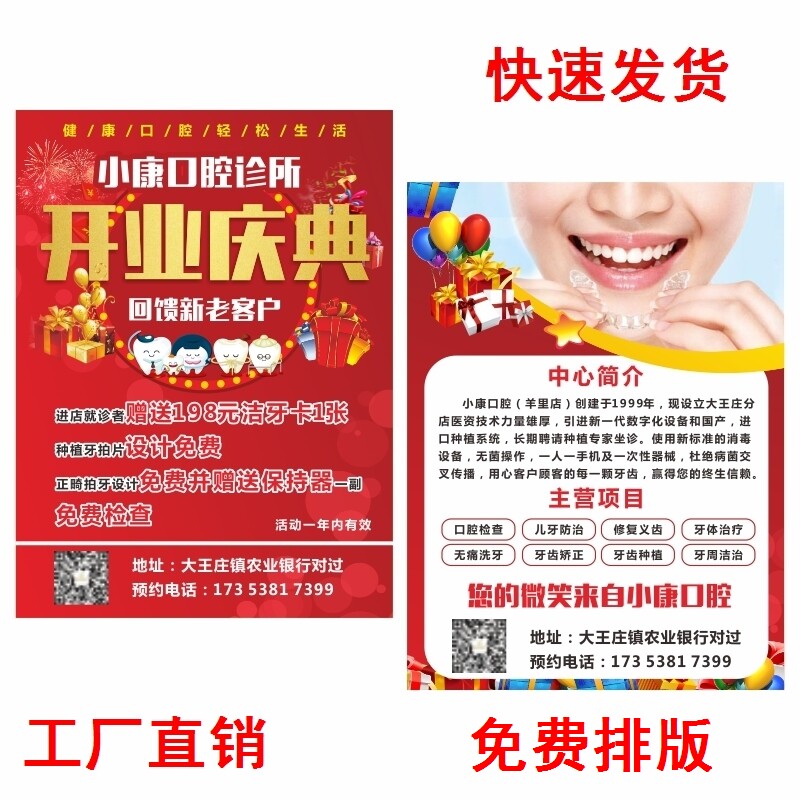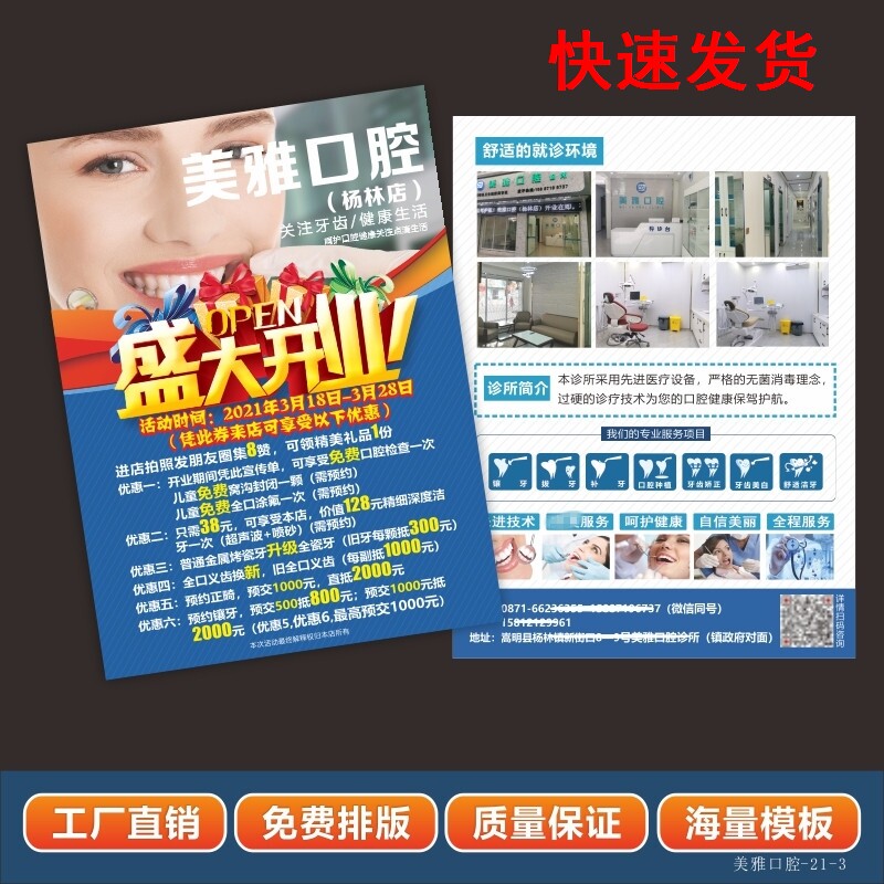 口腔医院牙科诊所开业宣传周年庆牙齿护理活动地推广告单页印折页