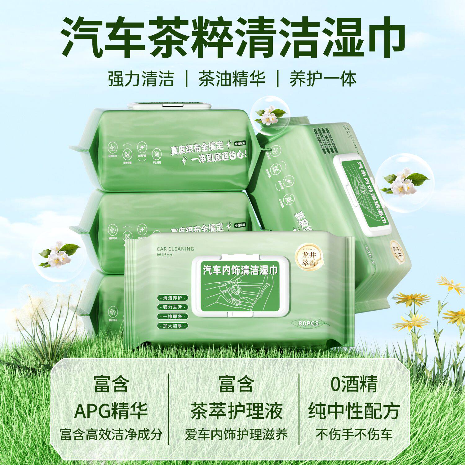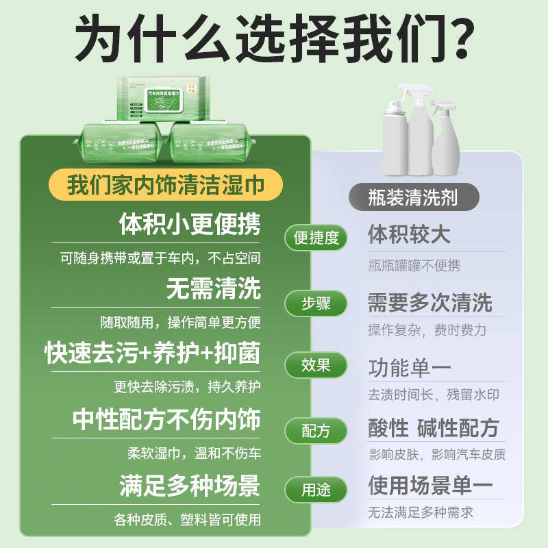 汽车内饰清洁湿巾擦车车内顶棚清洁皮革护理镀膜强力快速去污免洗