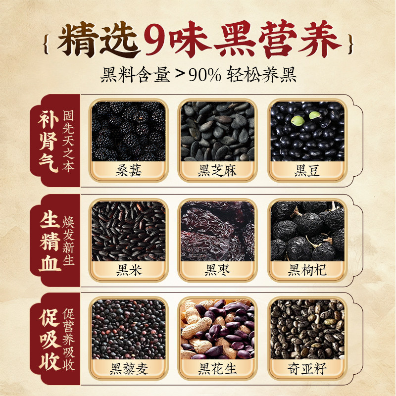 中医药有机五黑粉黑豆粉黑芝麻糊核桃桑椹粉养发黑发营养早餐代餐