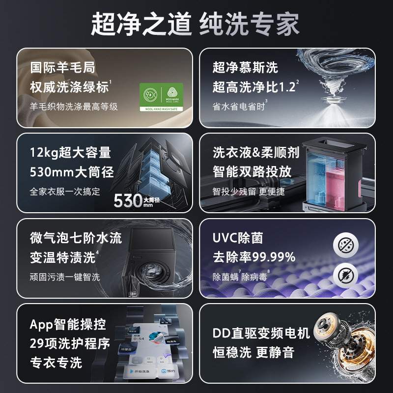 石头分子筛洗烘一体机 Z1 Plus 12KG洗衣机 蒸汽除皱 超薄平嵌
