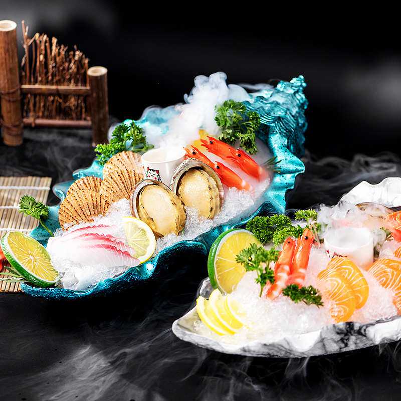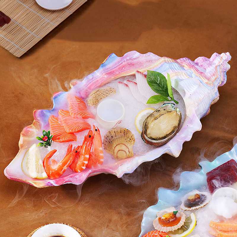 高端三文鱼刺身鱼生拼盘专用冰盘创意干冰盘餐具海鲜姿造摆盘盘子