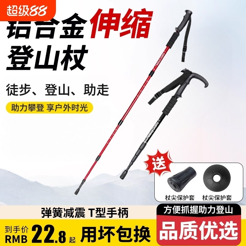登山杖户外超轻伸缩杖男女爬山徒步装备防滑多功能老人拐杖