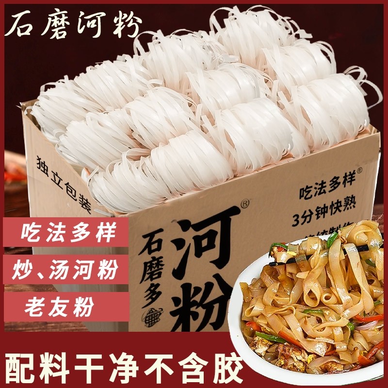 石磨干河粉整箱20块广西独立包装切粉老友粉汤粉宽粉米粉河粉批发