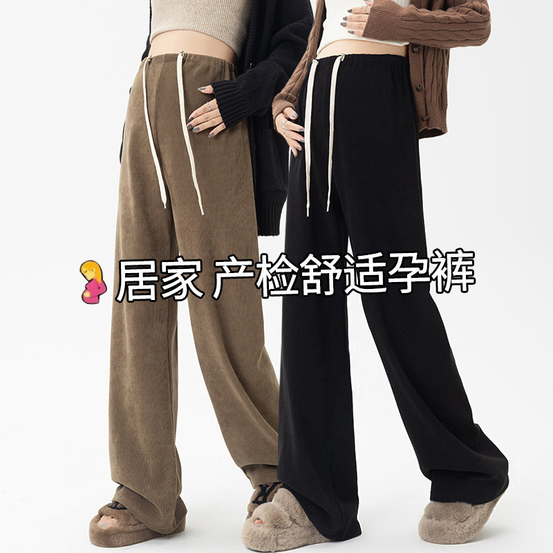 孕妇裤子春秋季外穿秋冬加绒外穿阔腿裤糯米裤休闲直筒长裤孕妇装