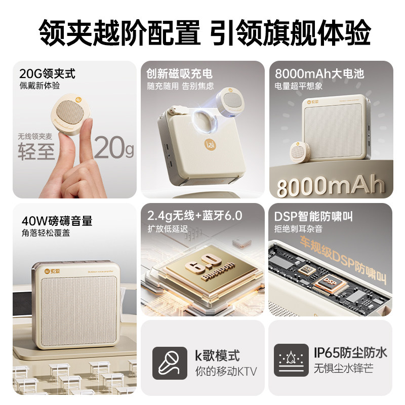 领夹麦磁吸充电/40W大功率/ 8000mAh长续航