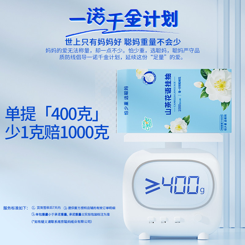 聪妈山茶抽纸300张加大家用实惠装餐巾纸可湿水卫生面纸婴儿纸巾